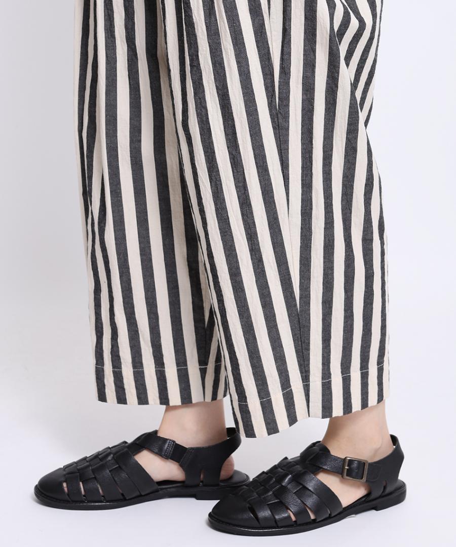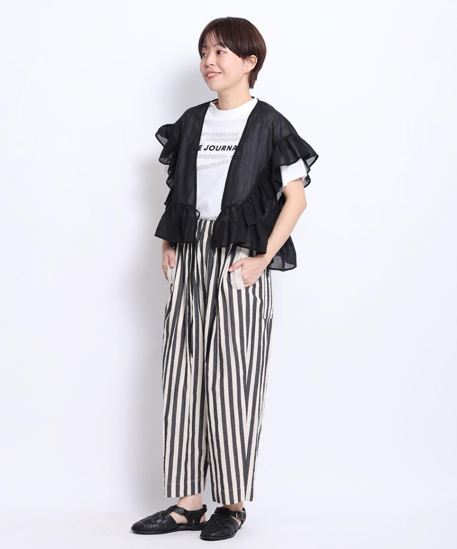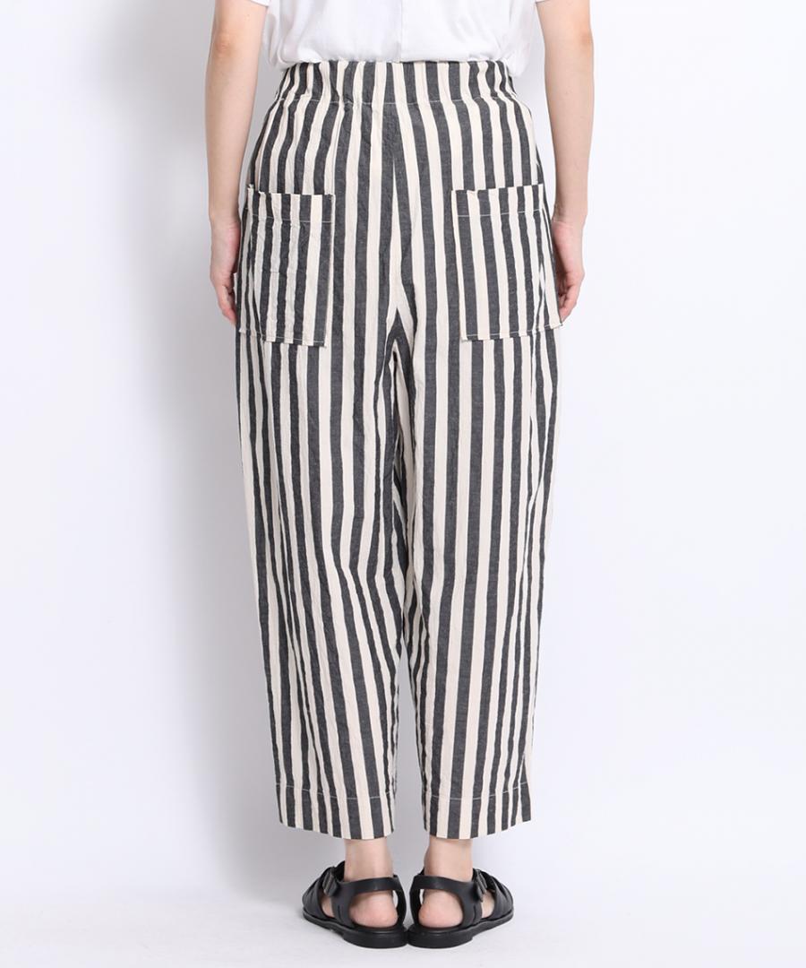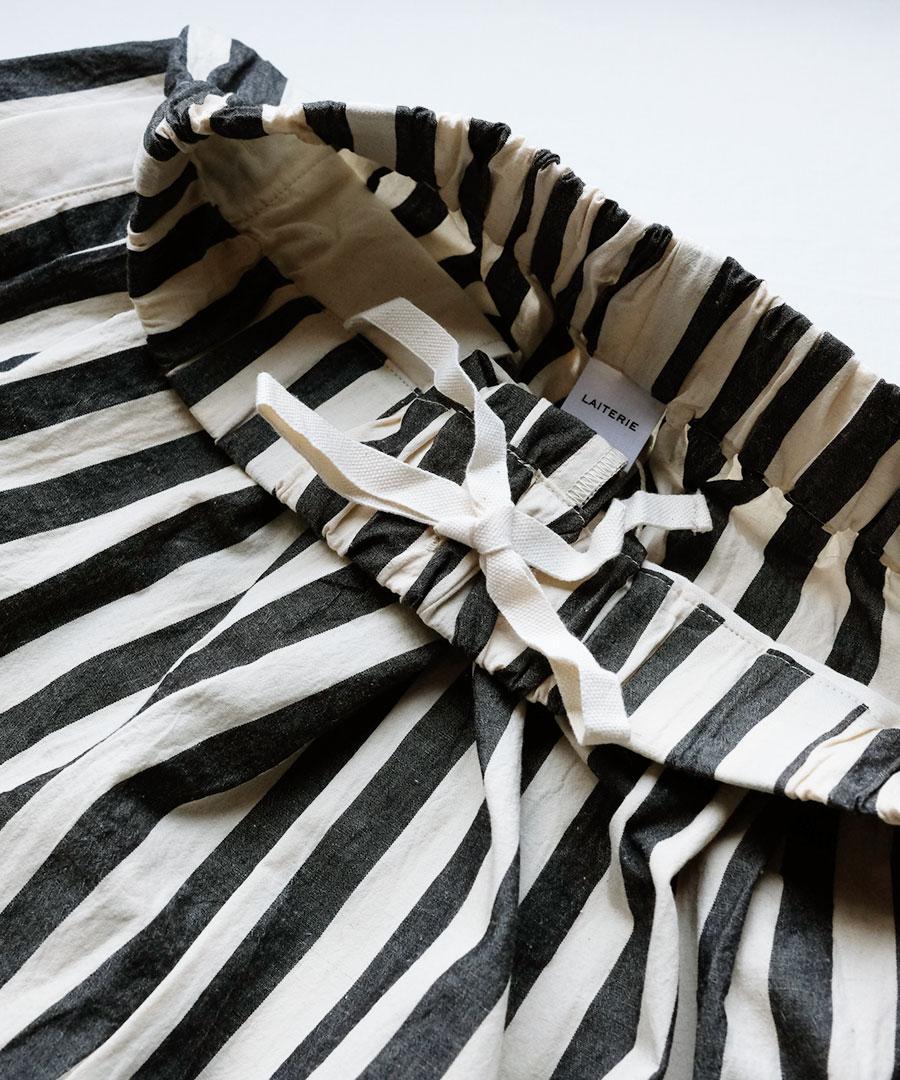 ナチュラルな風合いのストライプ生地で派手すぎず大人な雰囲気も出しつつ、
