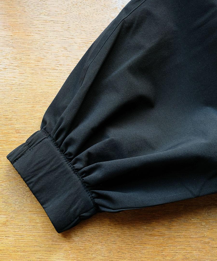 ウエスト部分の内側に紐が通っていますので、絞ることによってブラウジングして形を変えて頂けます。