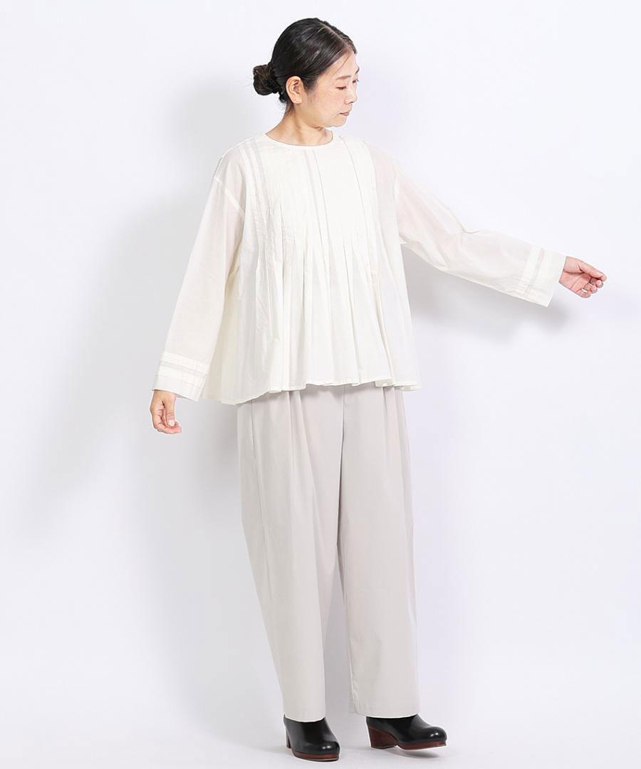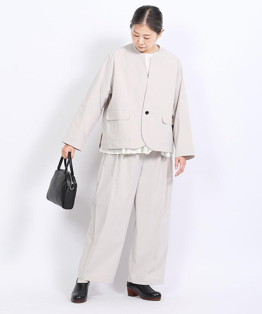 フォーマル過ぎず、カジュアル過ぎず、丁度良い素材感なのが着回しやすいのでおすすめです。