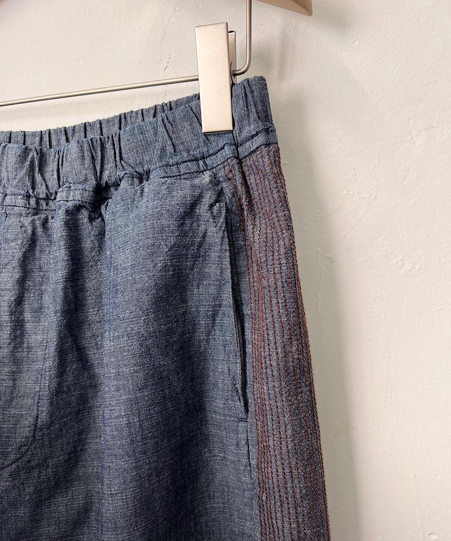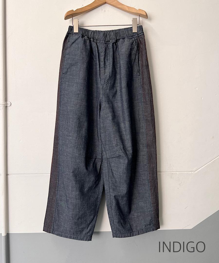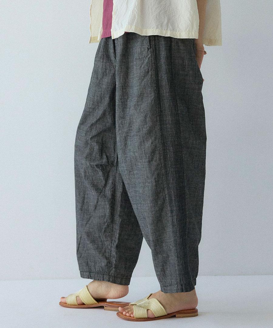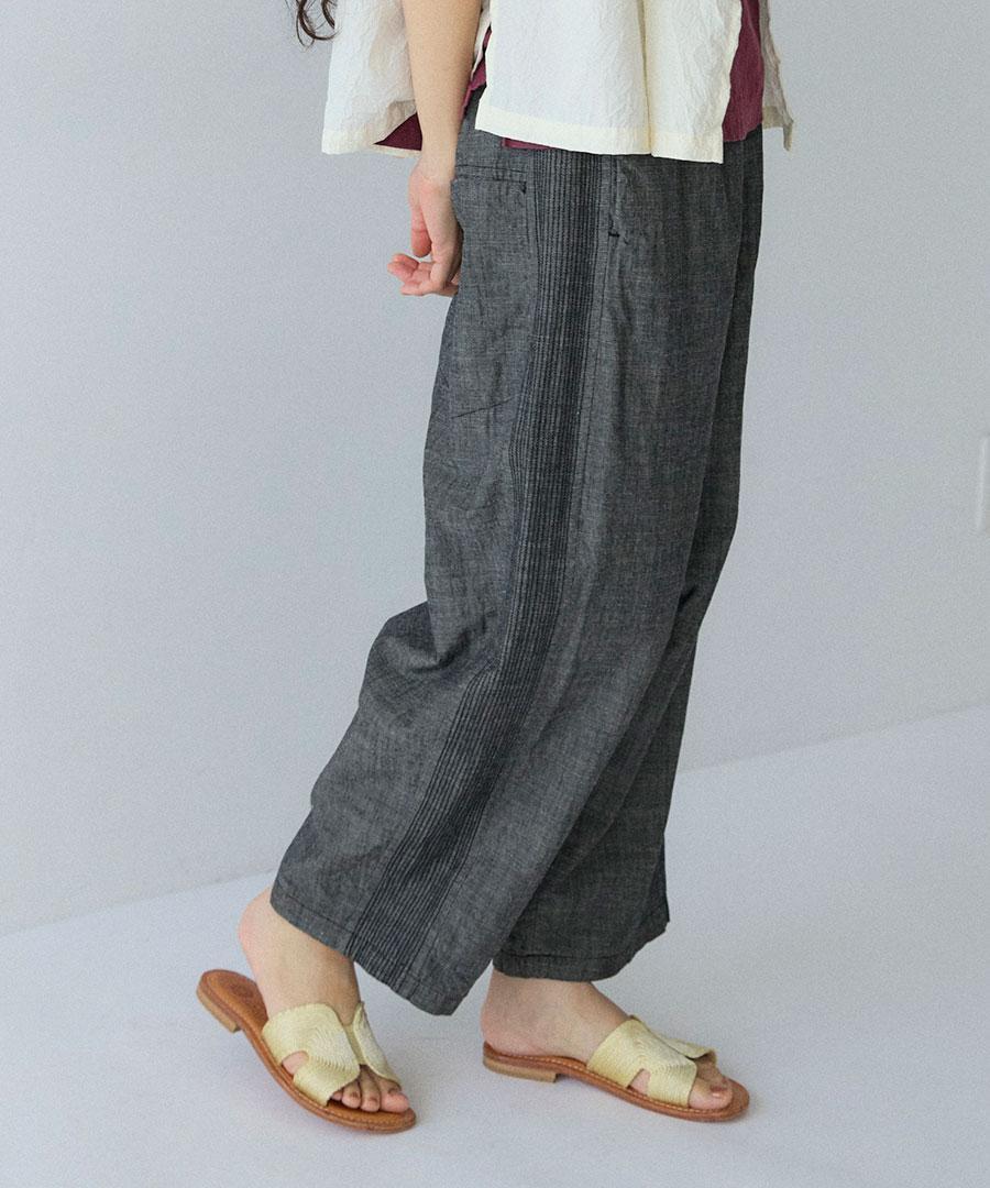 綿麻スラブデニム ラインステッチパンツ