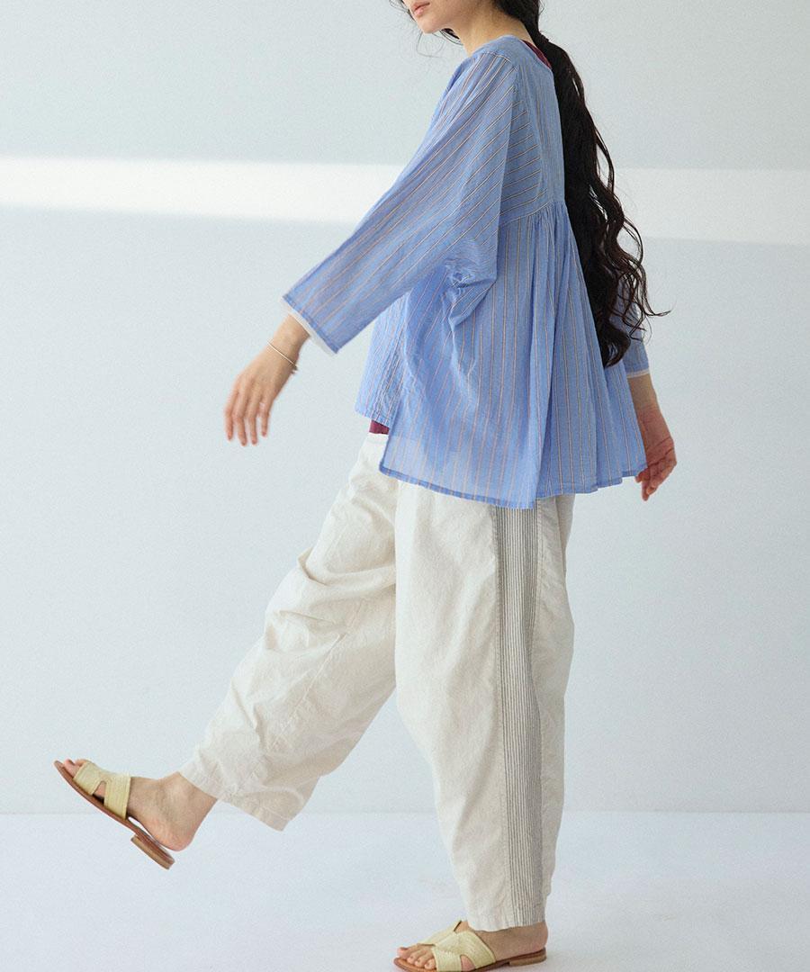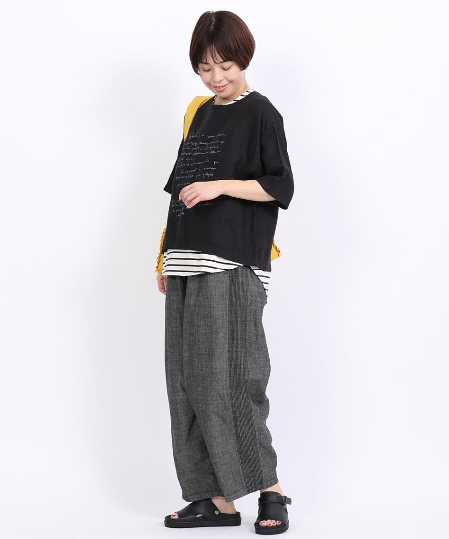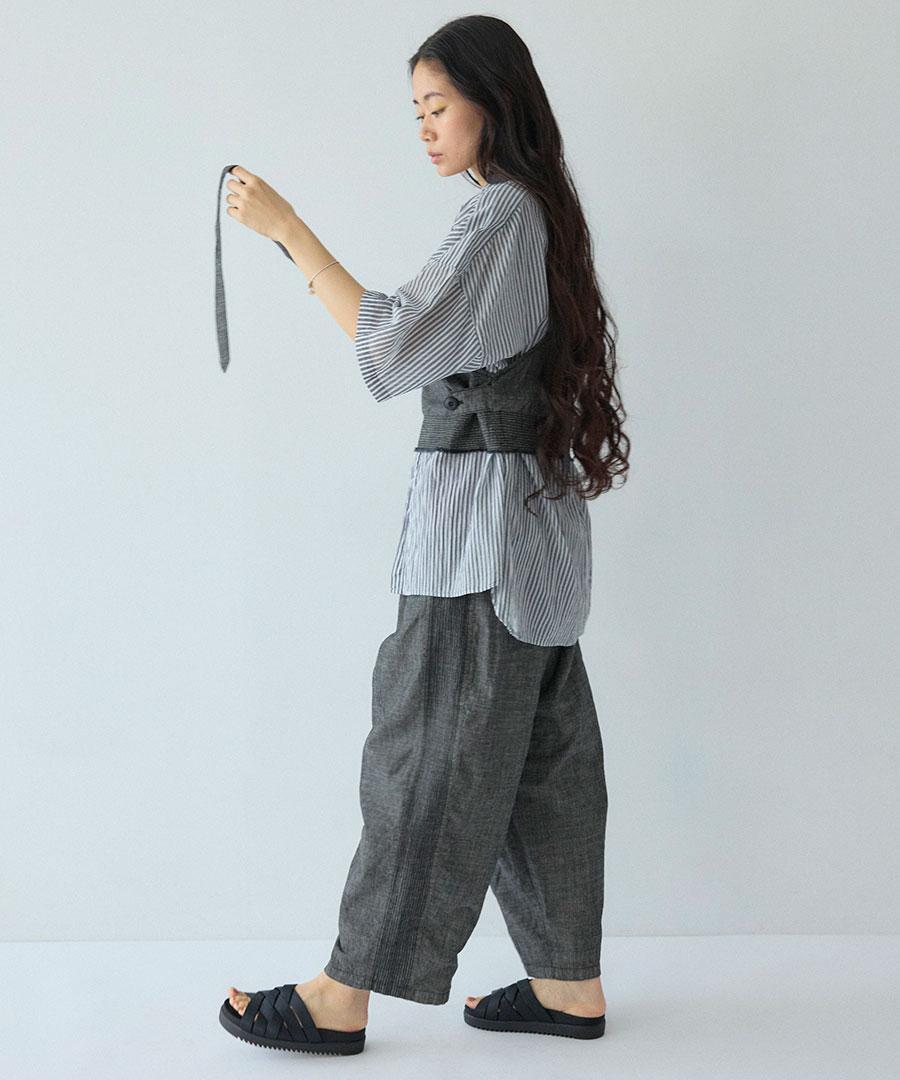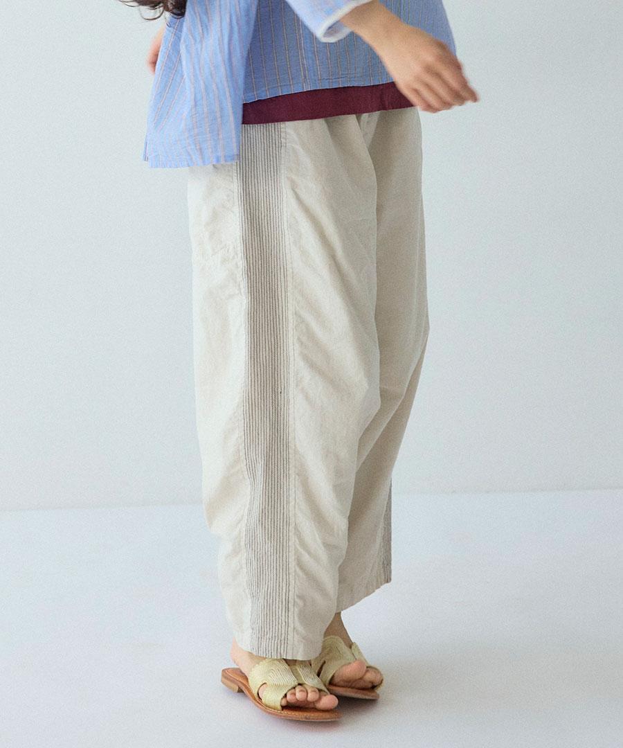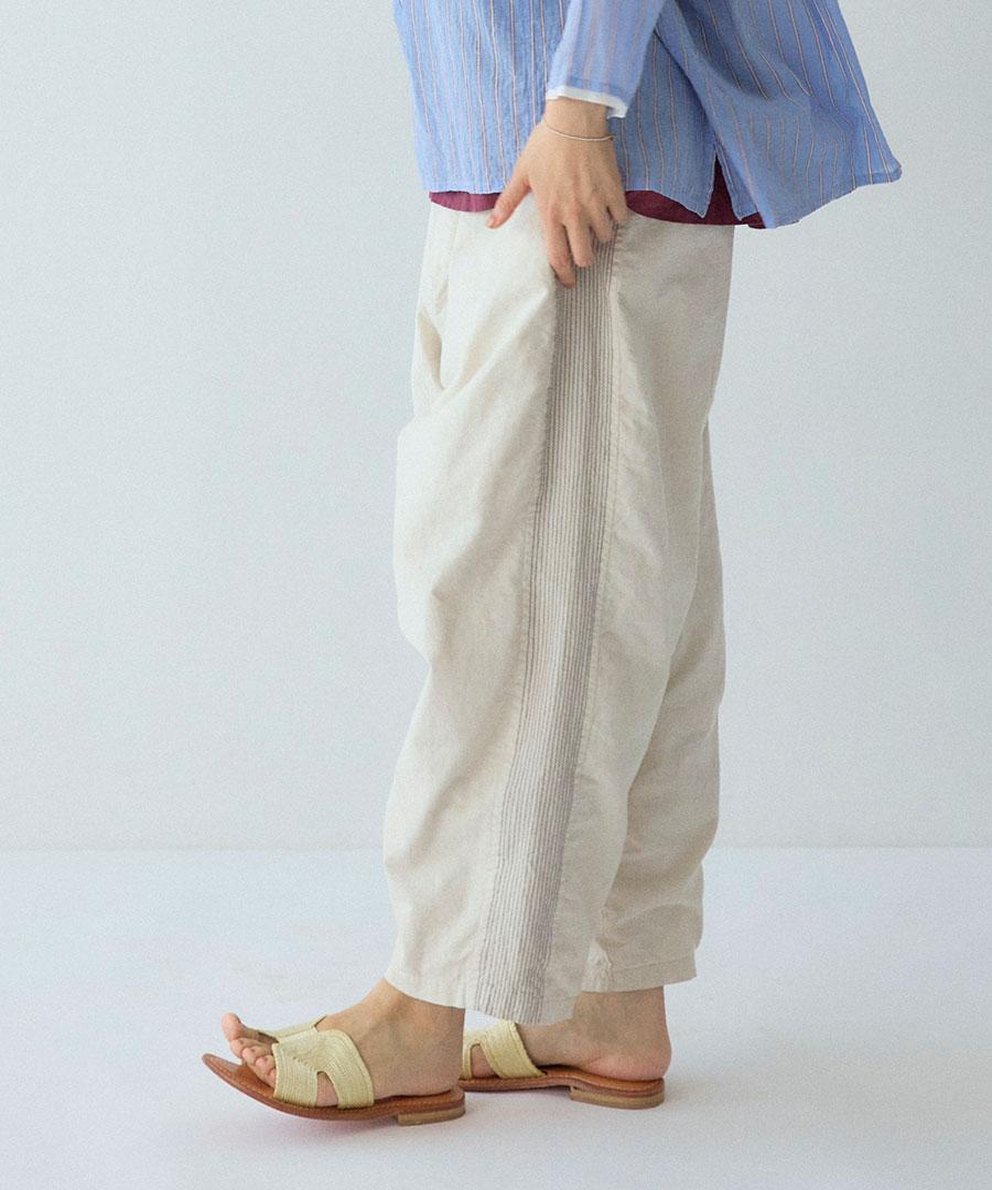 綿麻スラブデニム ラインステッチパンツ