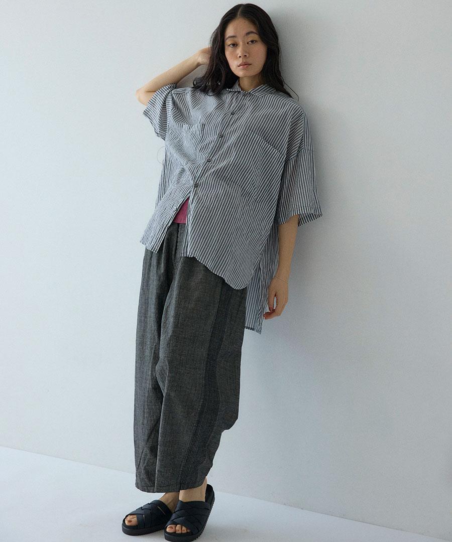 綿と麻をブレンドしたスラブデニム素材を使用しており、柔らかく軽やか。