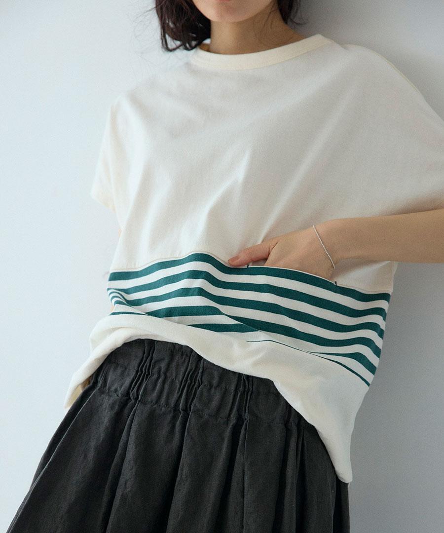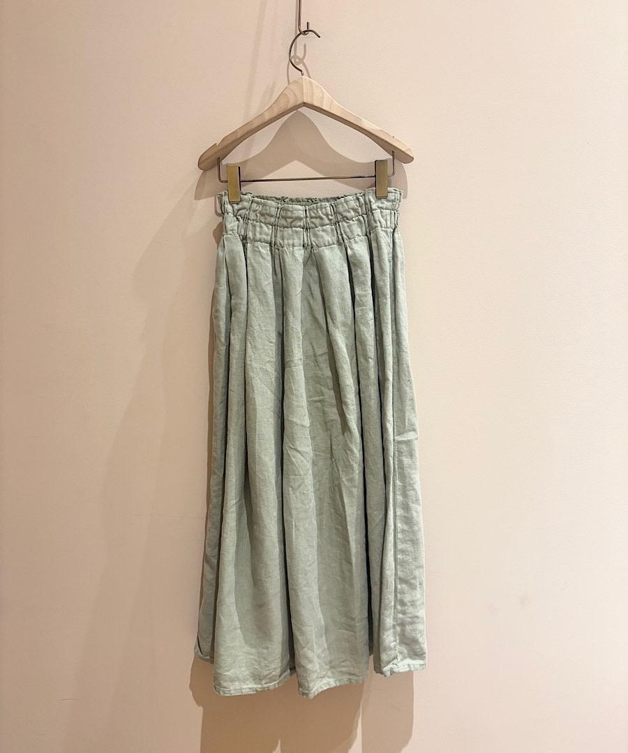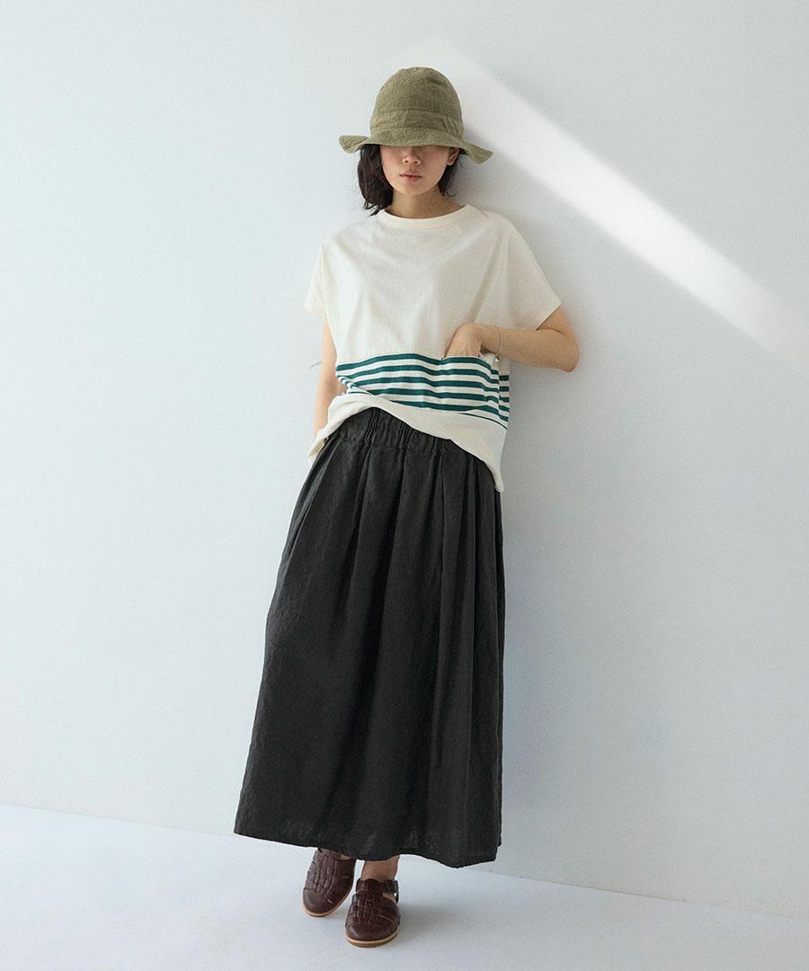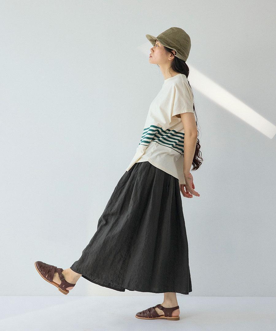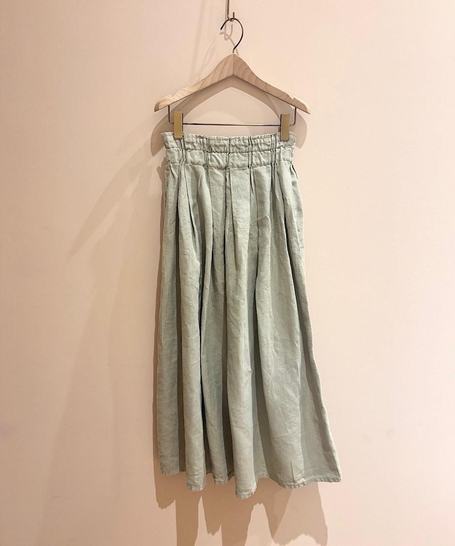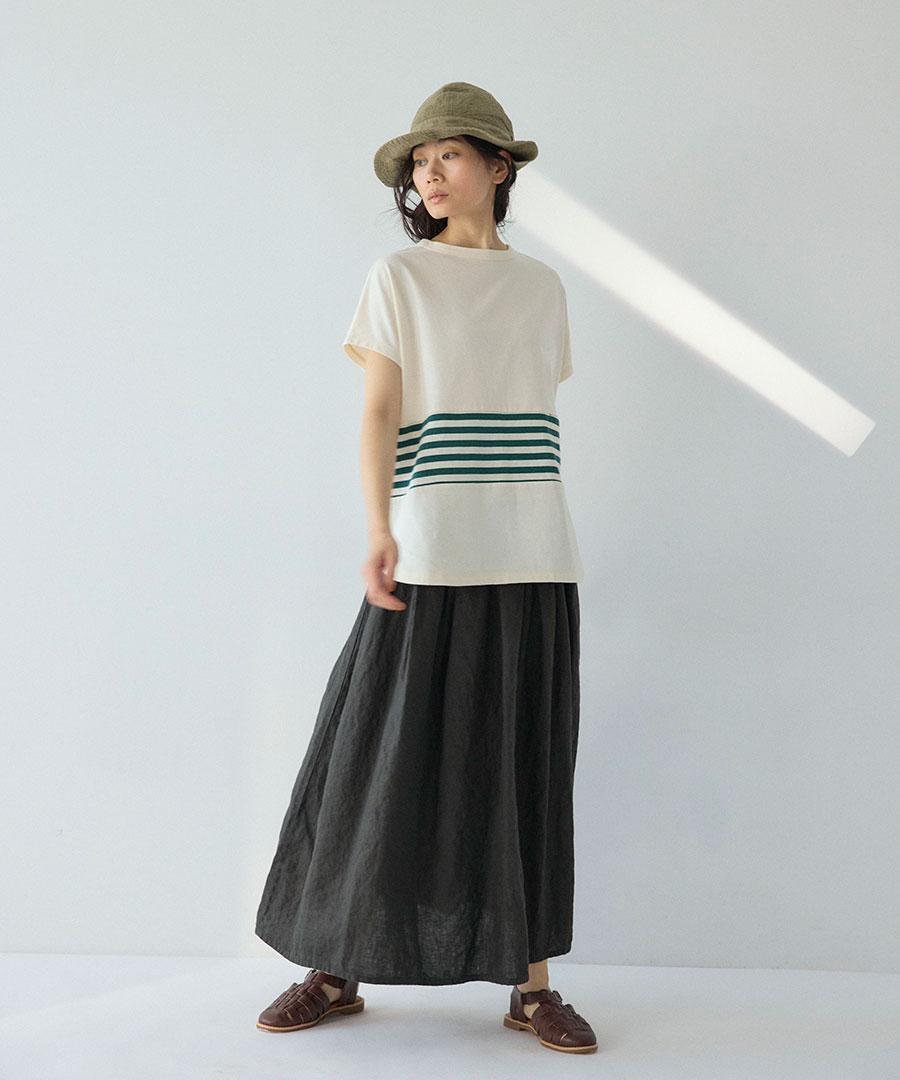 ウエストからタックが入っているので、膨らみが抑えられ、すっきりと着こなせます。