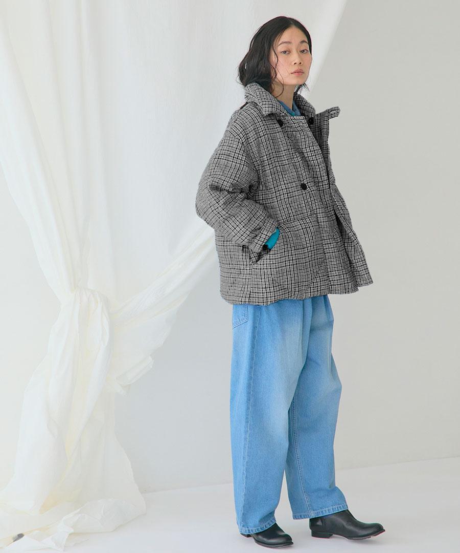 化繊のジャケットよりもナチュラルな雰囲気のコーディネートが叶います。