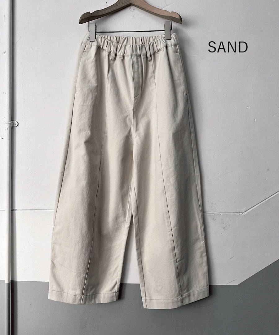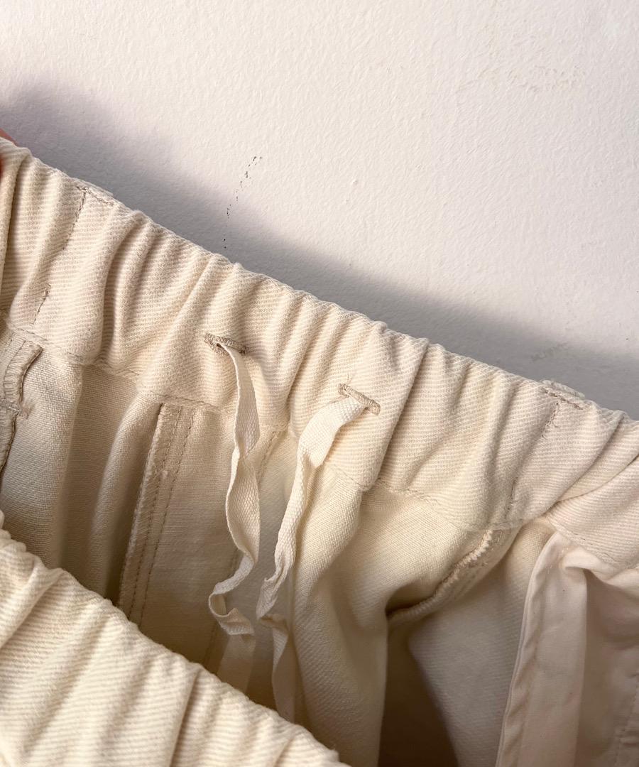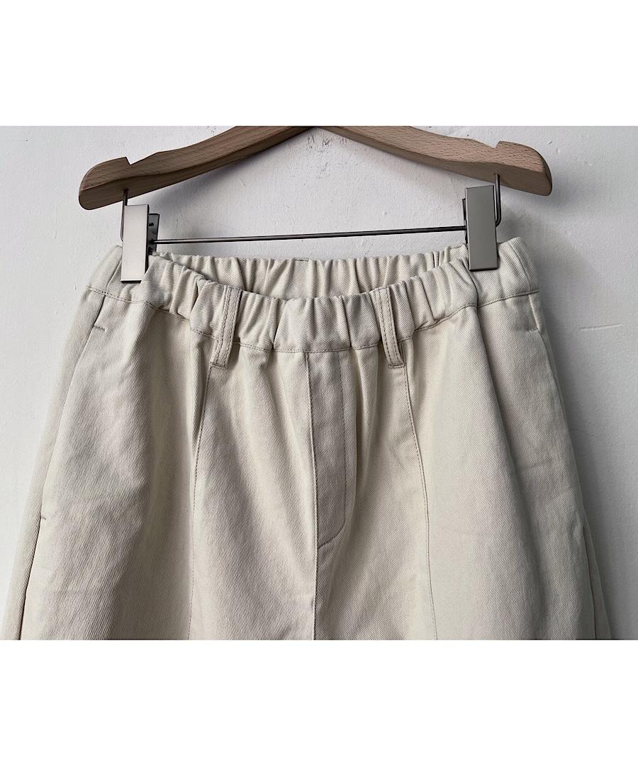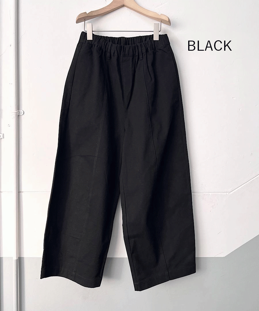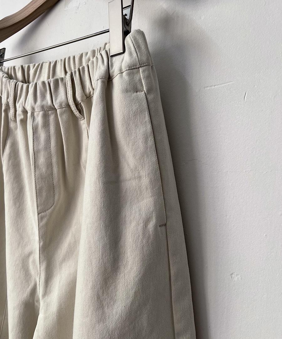 高密度に織り上げたコットンツイル素材で仕立てたカーブパンツ。