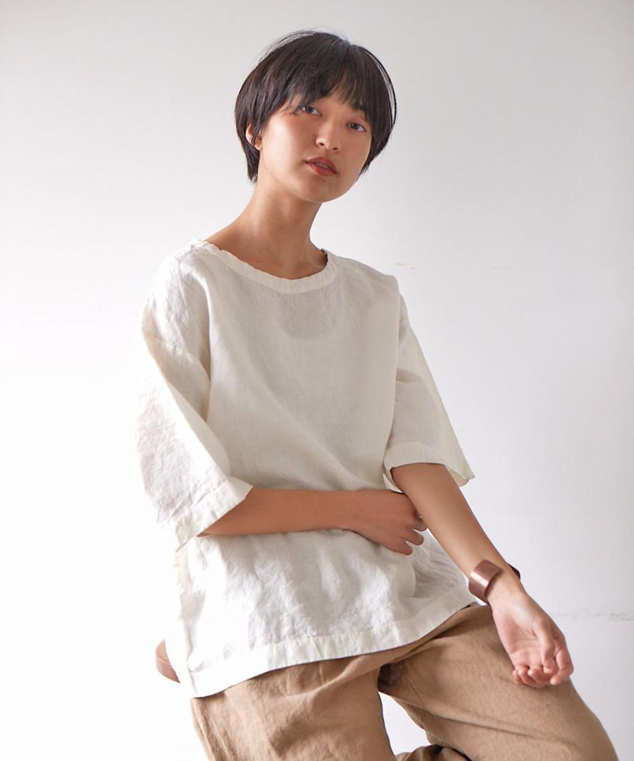 麻100%素材でTシャツのようにタフに着られるデイリー使いにぴったりなプルオーバー。