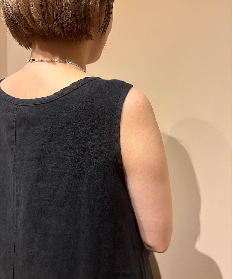 女性らしいデコルテラインを表現できるように襟ぐりはやや広めの仕上がりです。