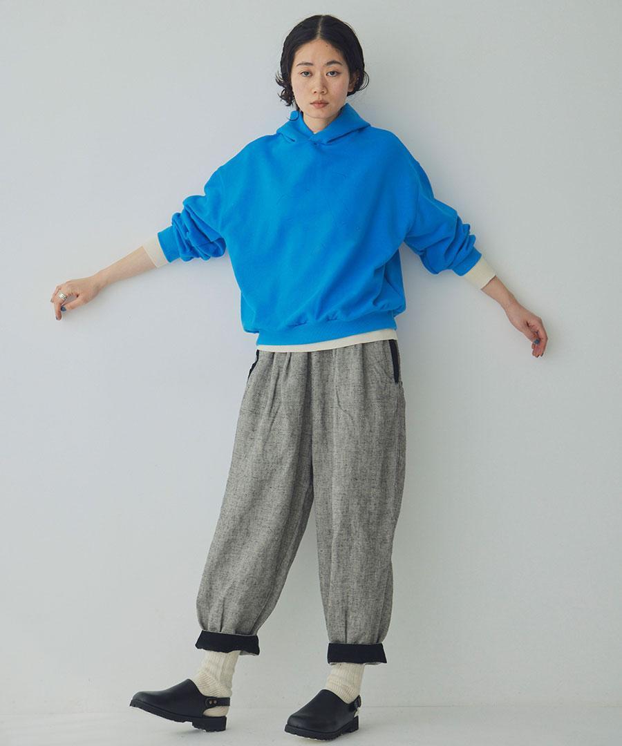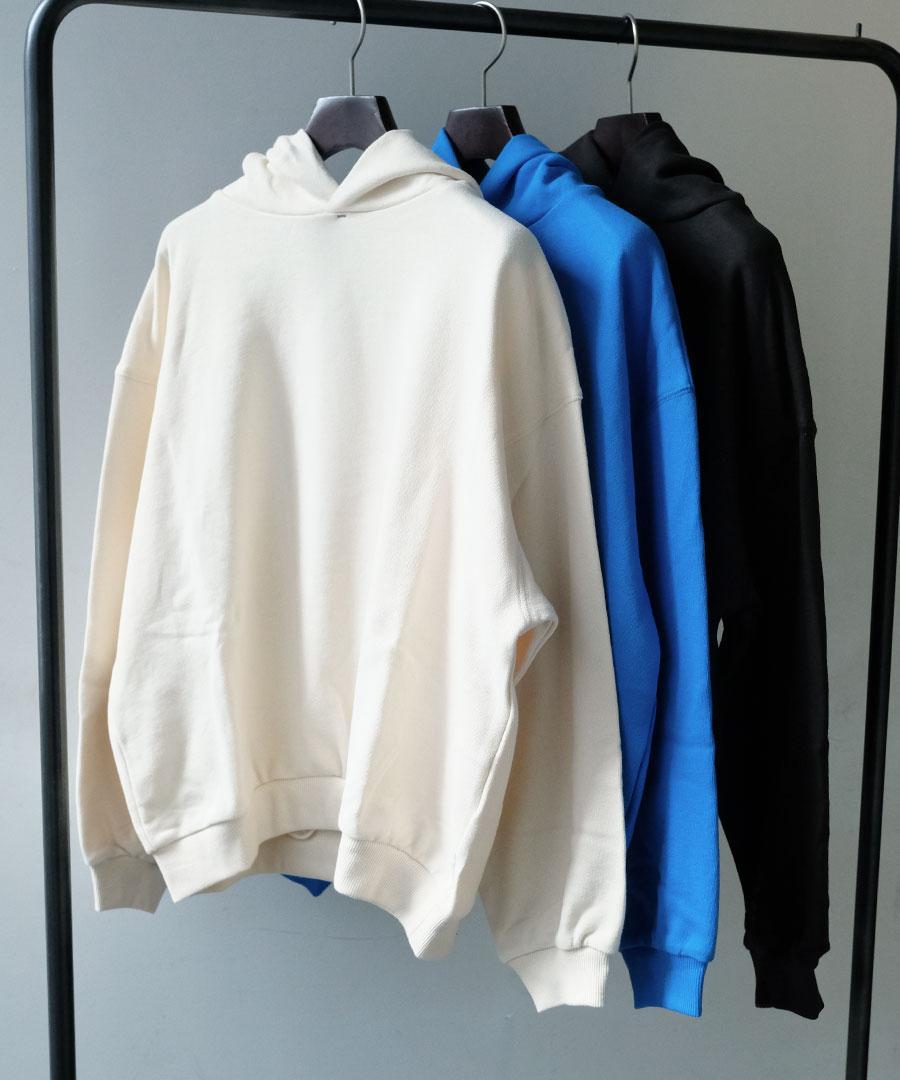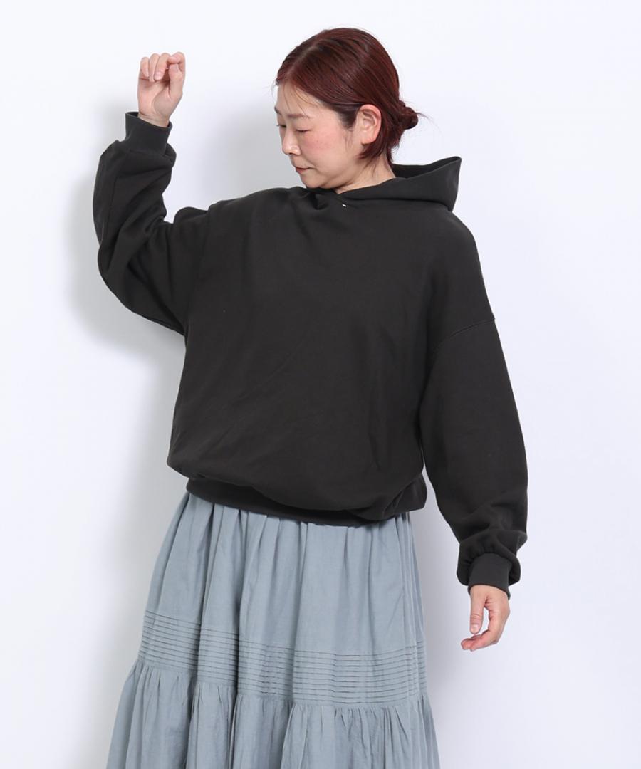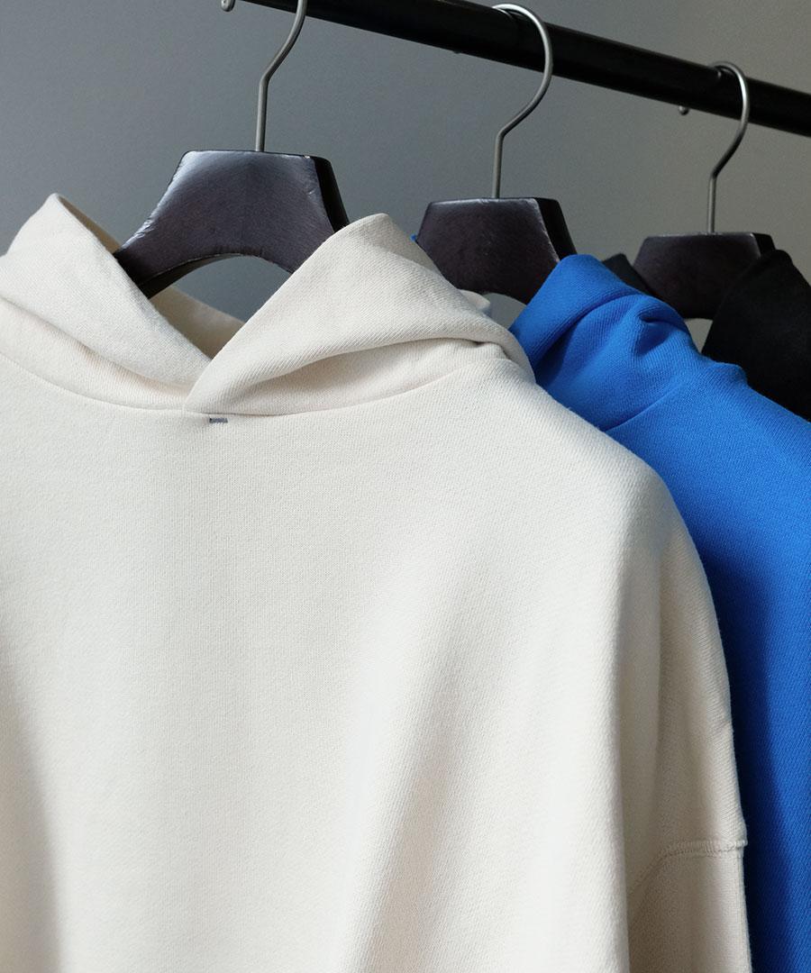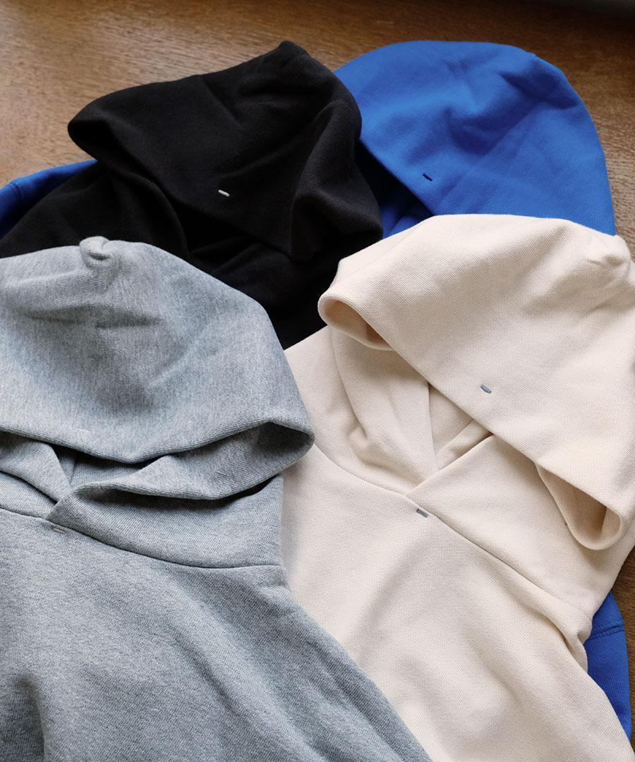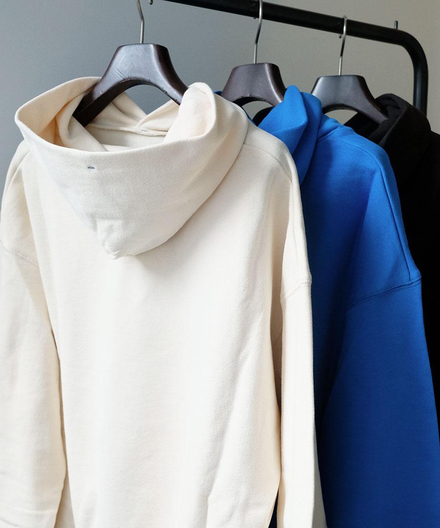 使いやすい厚みのコットン裏毛素材で仕立てたプルパーカー。