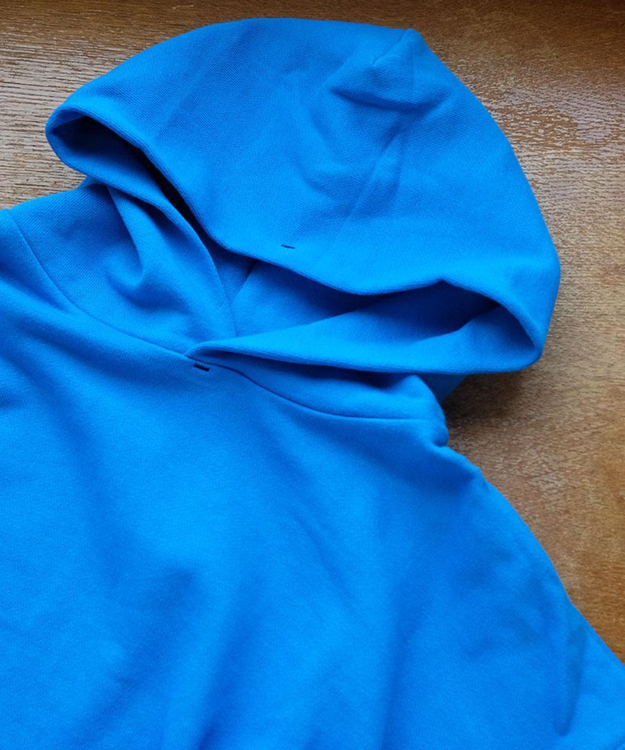 首元とフードの縁にステッチを施してちょっとしたワンポイントにしました。