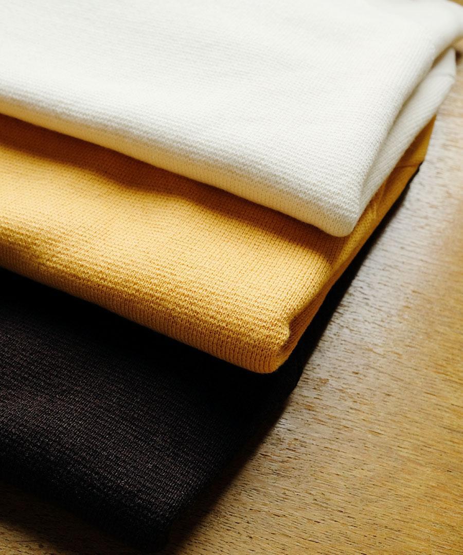 ミラノリブ編みで編み上げている為、柔らかいながらもしっかり目の詰まったニット地です。