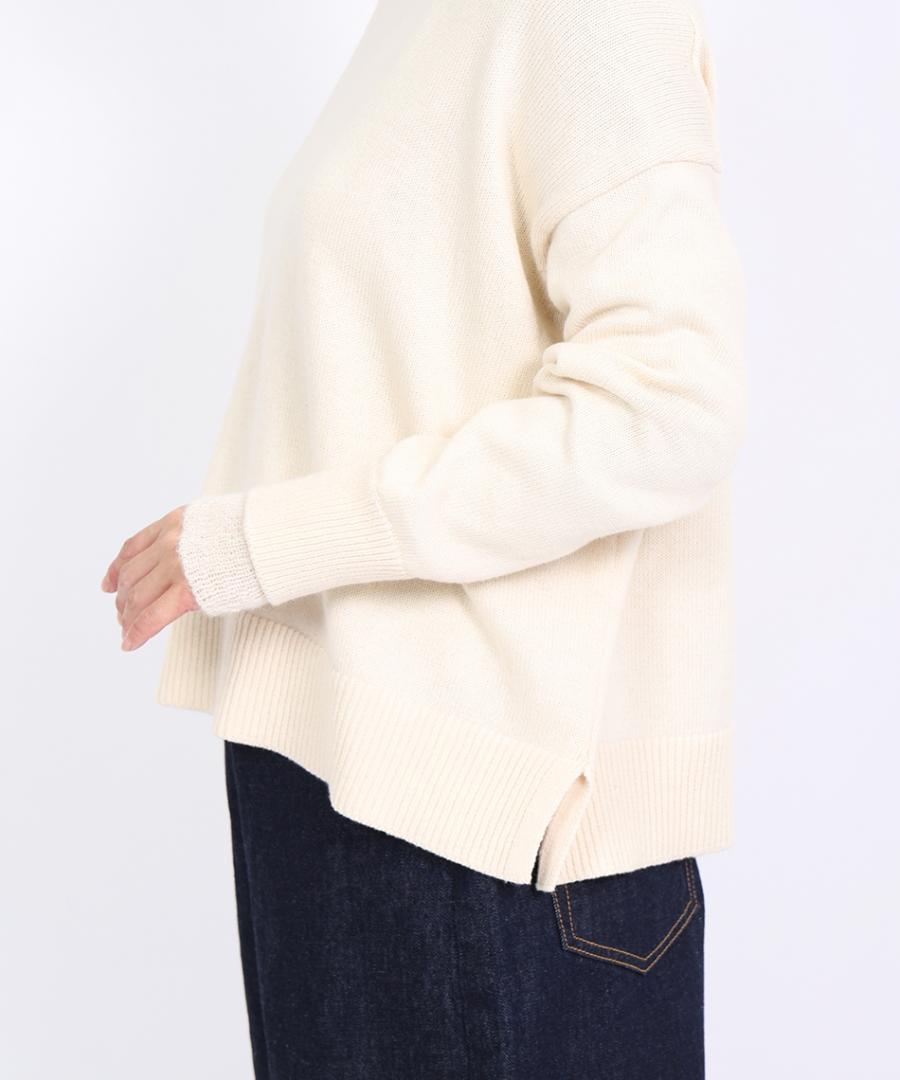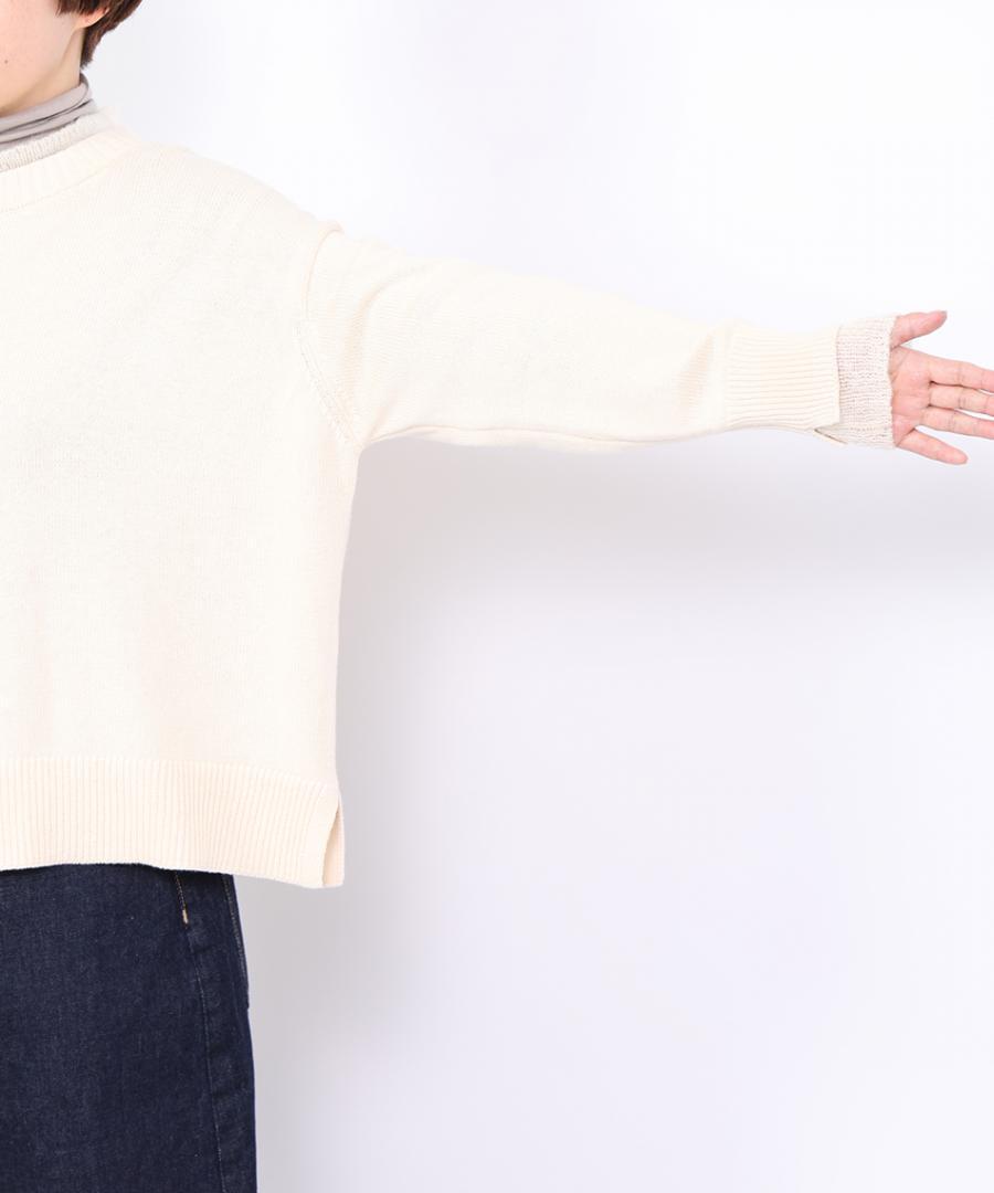 異素材レイヤードが映える、洗練された大人のニットプルオーバー。