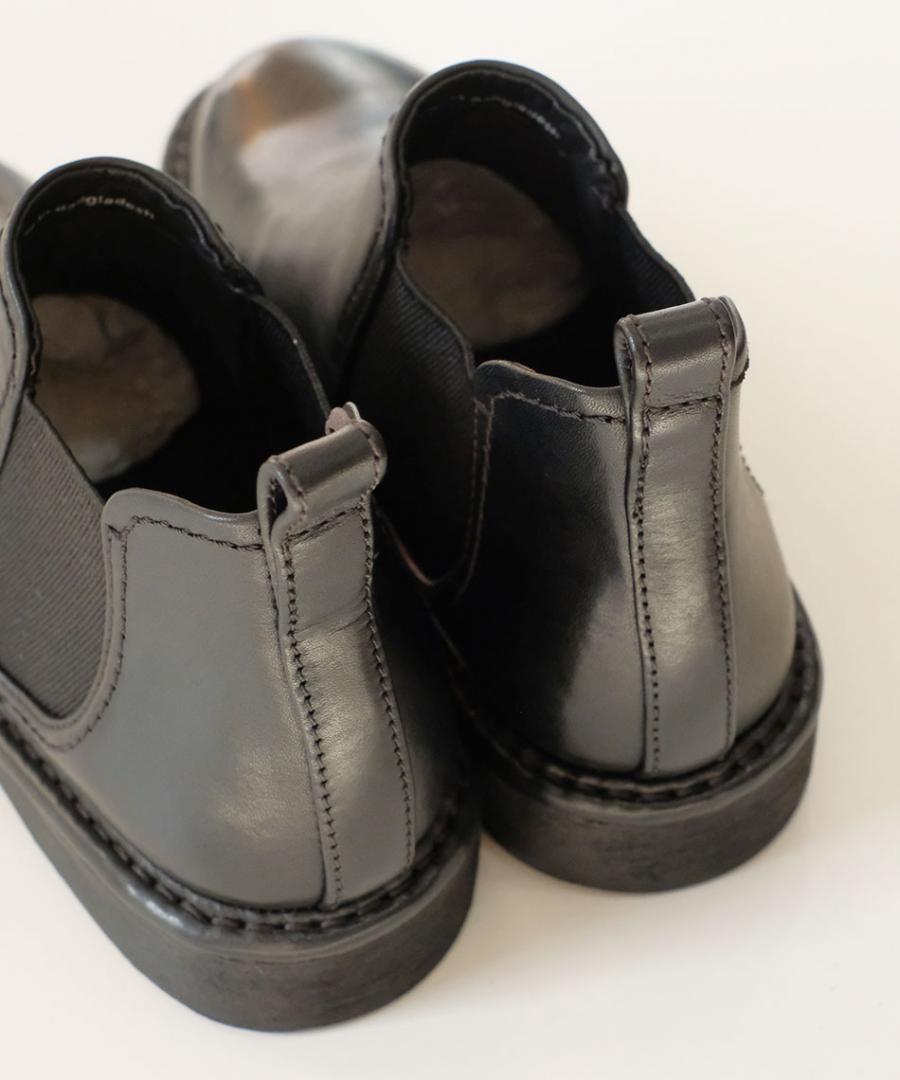アッパーと中底を一緒に縫い合わせるプラット製法で、返りのいい歩き心地に仕上げています。