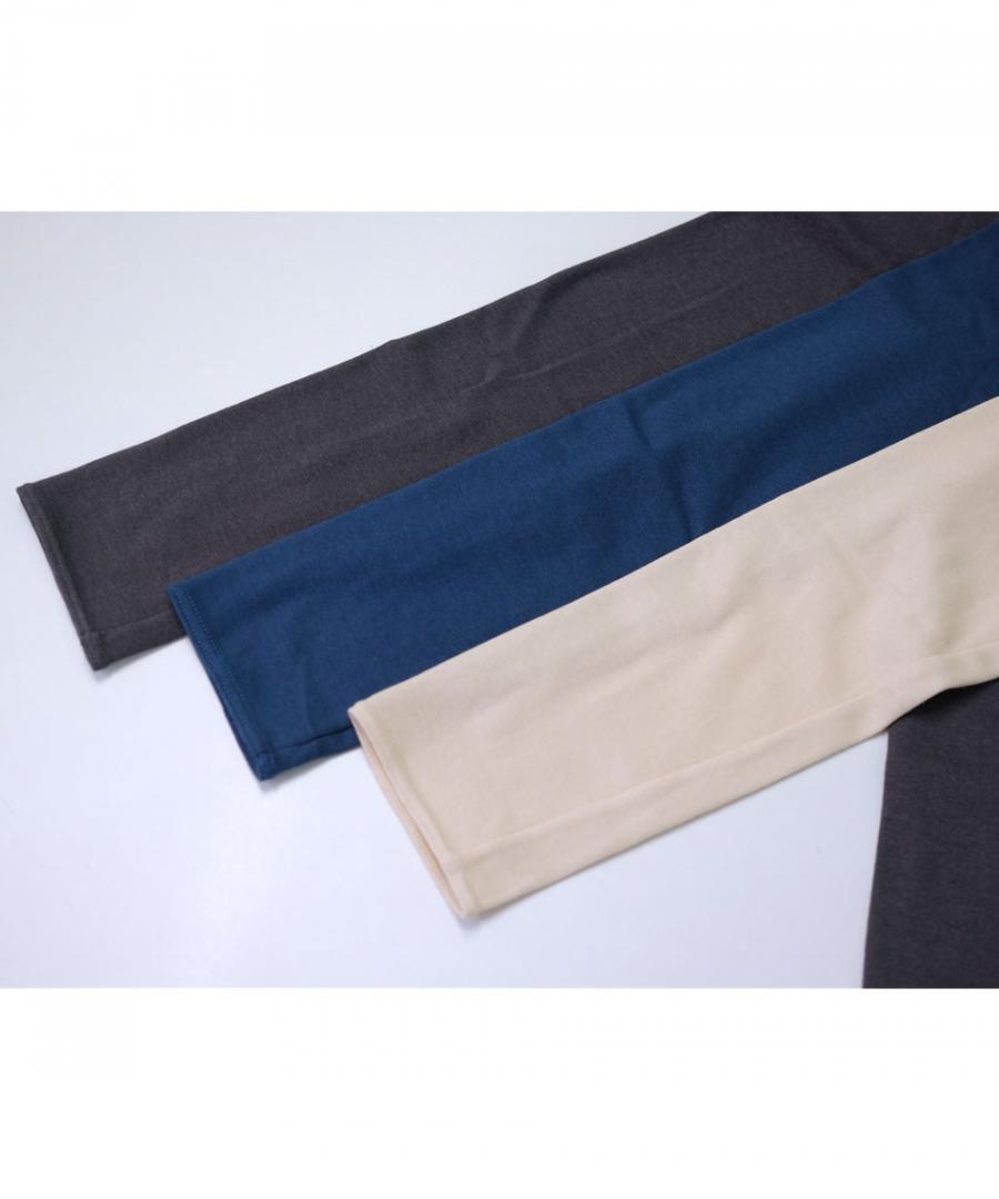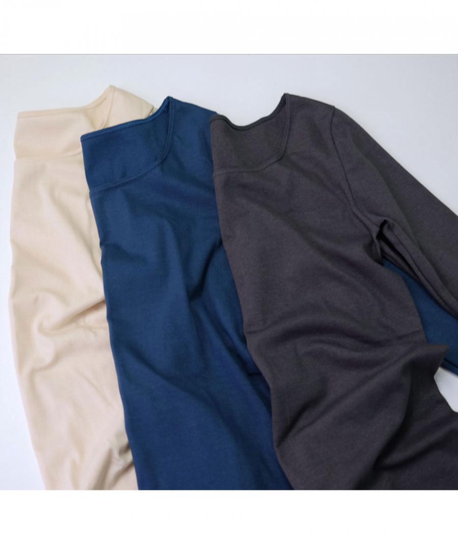 2層構造で厚すぎず薄すぎずの生地感が秋冬にぴったりです。 側面に縫い目のないシームレス仕立て。肌にあたるごろつき感はありません。伸縮性もきちんとあります。
