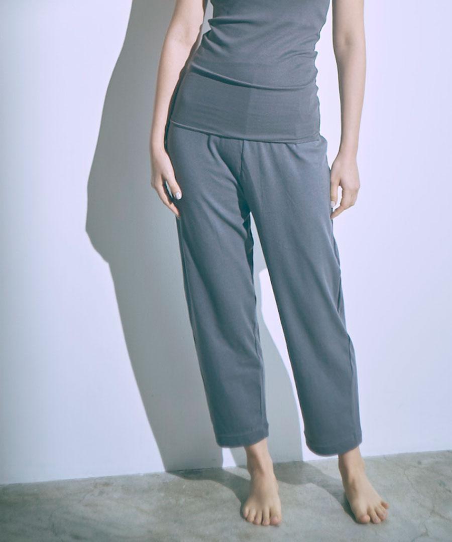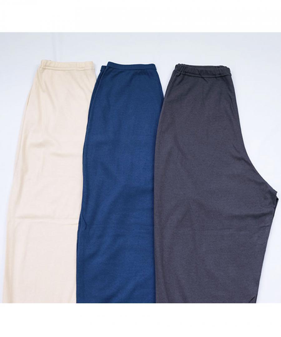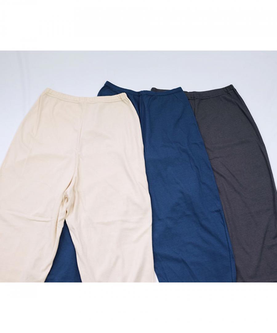 ゴム穴付きのリラックスイージーパンツ。 落ち感もあってシンプルだけど綺麗な印象です。 お家でくつろぐ時にとっても楽でおすすめです。臨月のスタッフも「とても楽ですよ~」と教えてくれました!