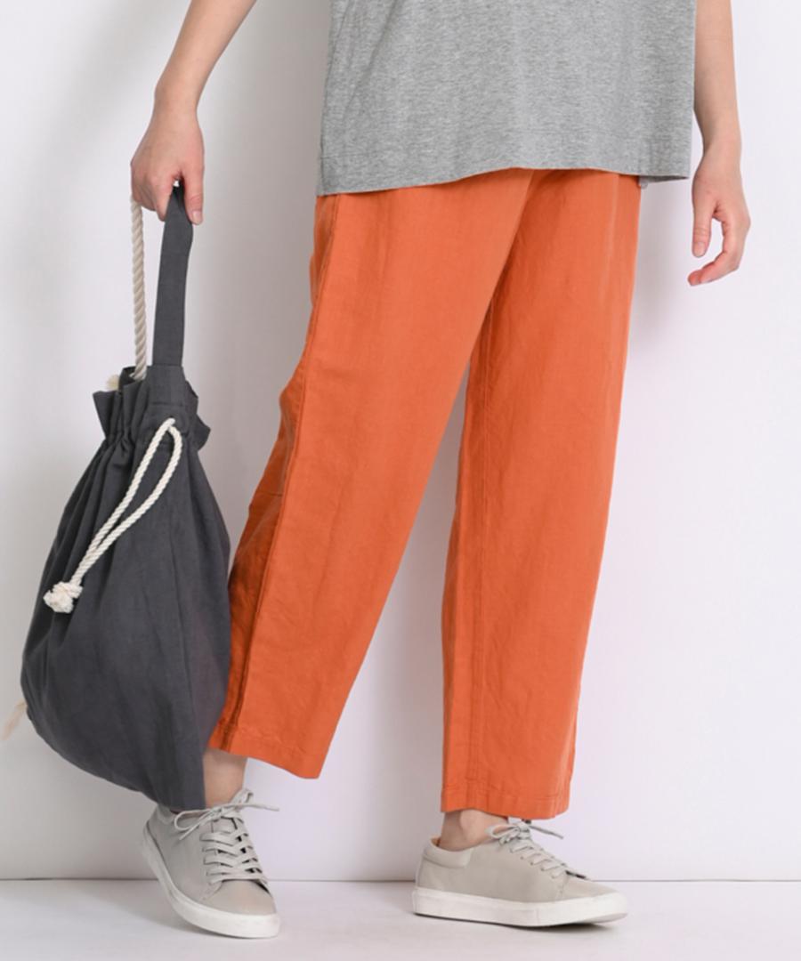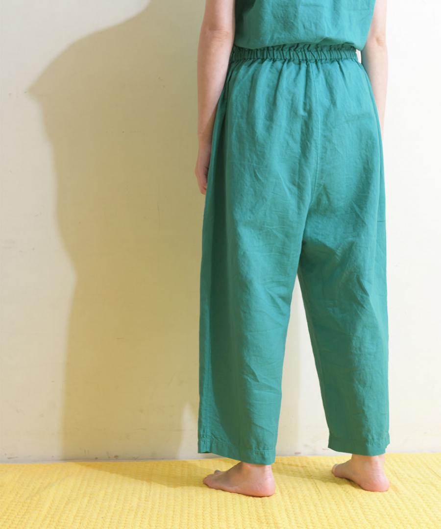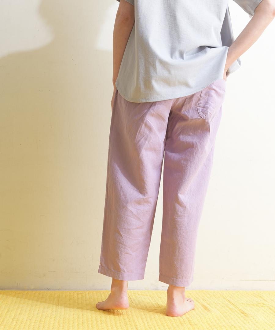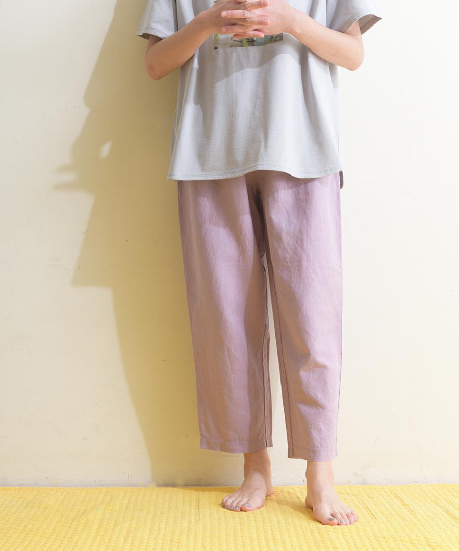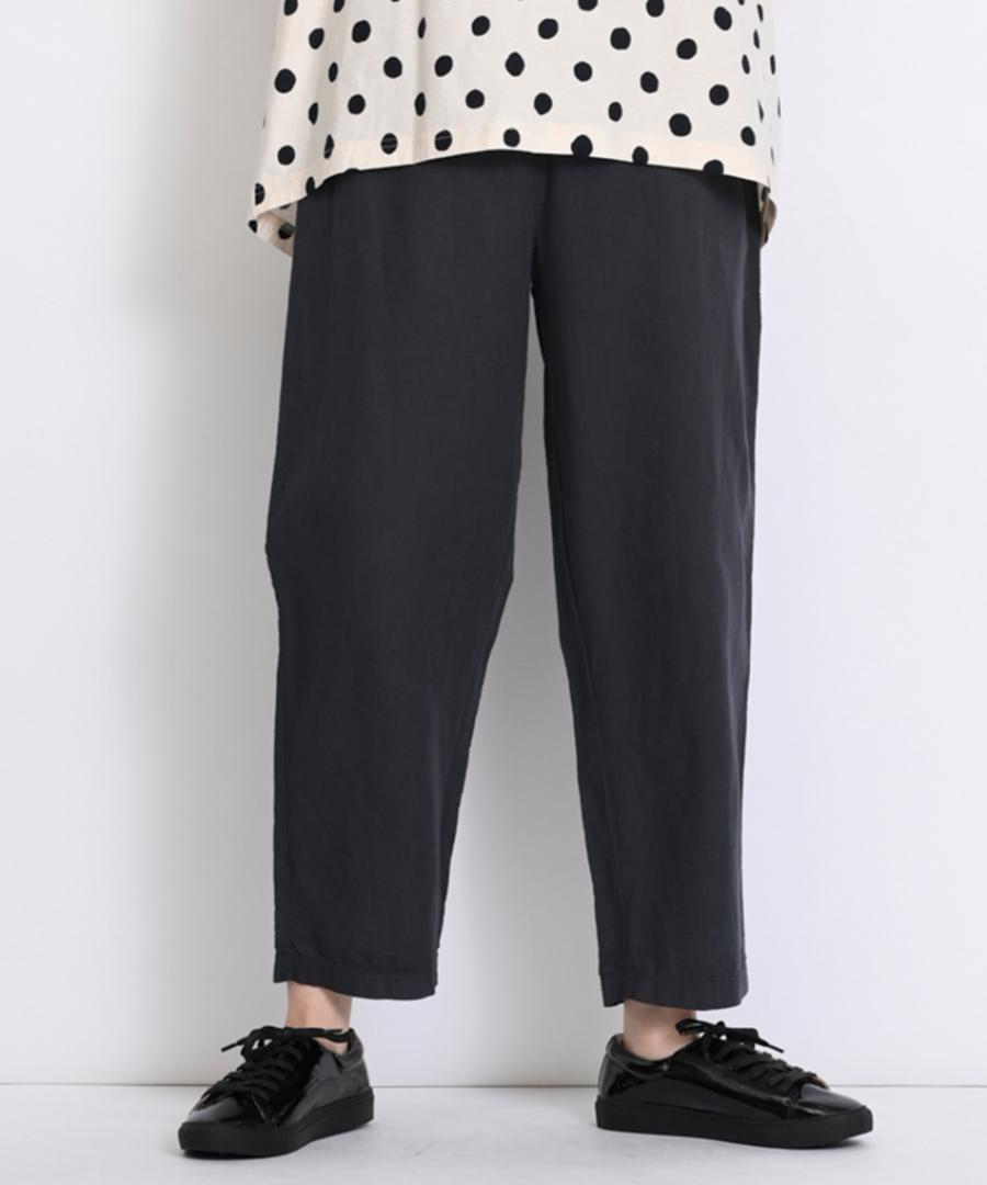 すっきり履けるテーパード型のイージーパンツ。足首の見えるクロップド丈です。
