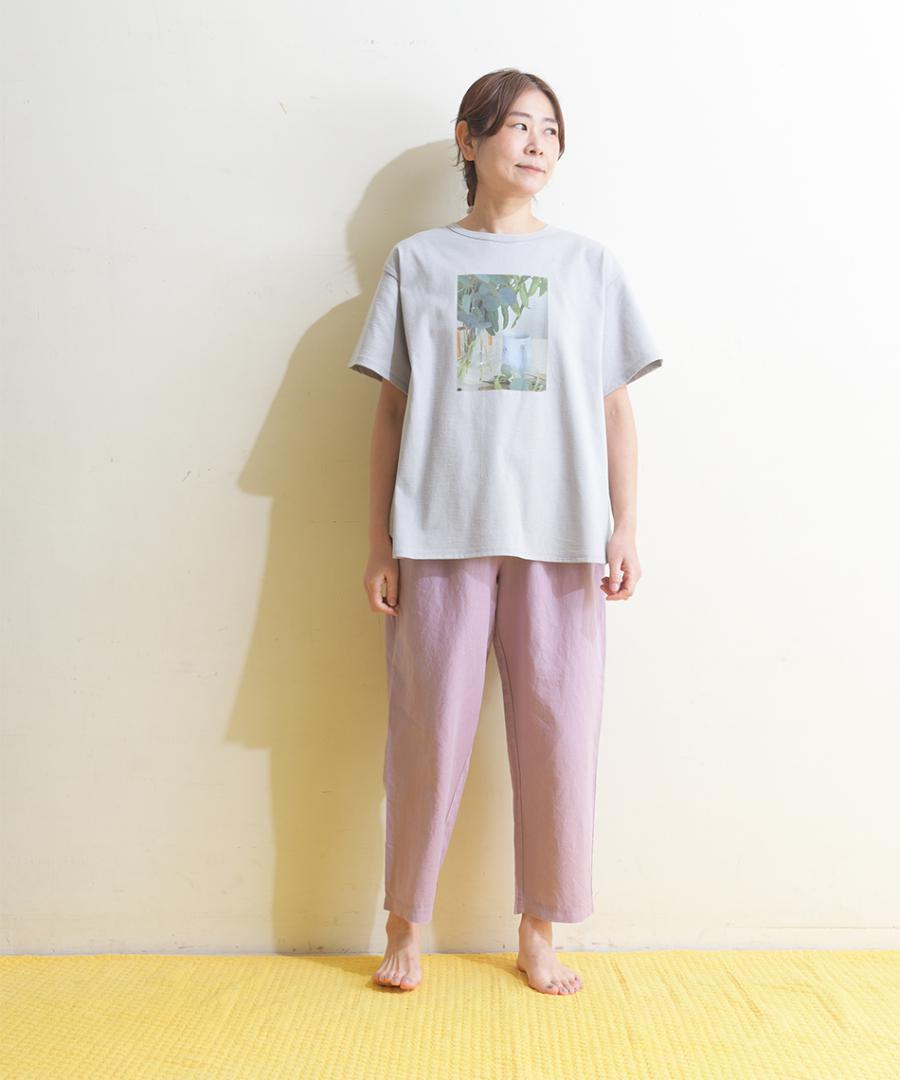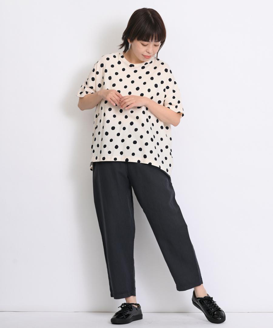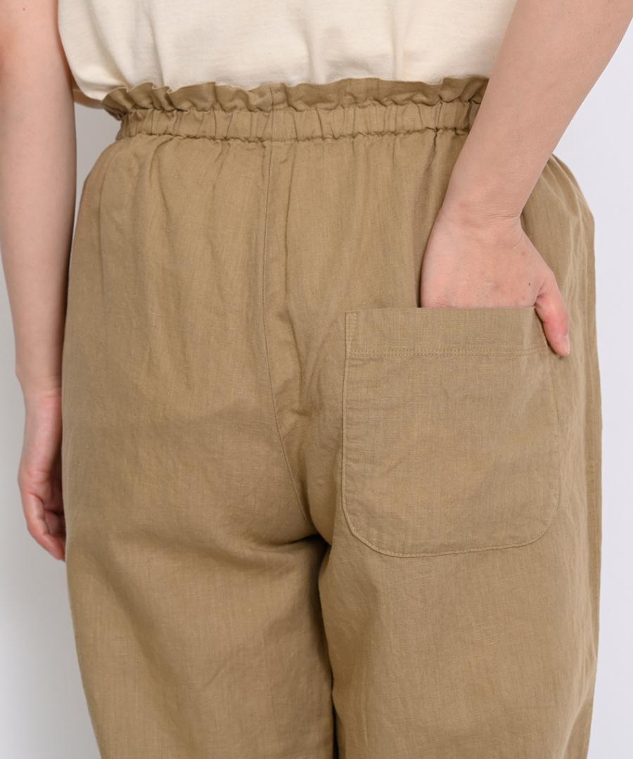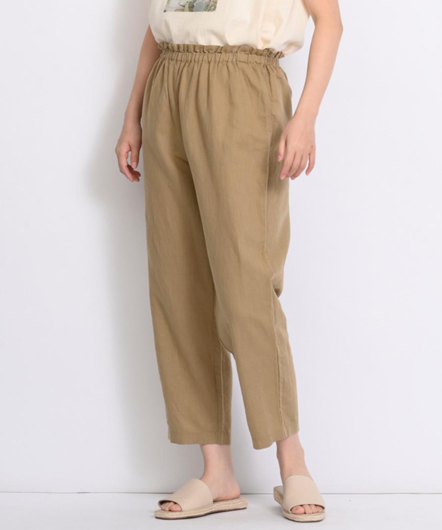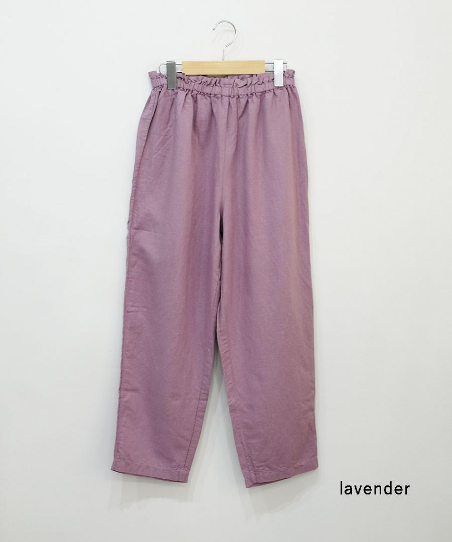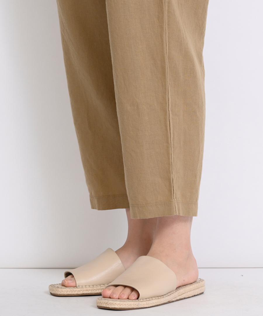 すっきり履けるテーパード型のイージーパンツ。足首の見えるクロップド丈です。