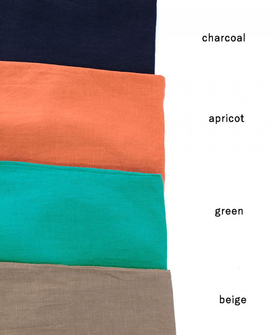 リネン60%、コットン40%の生地を、シーズンごとに製品染めしています。