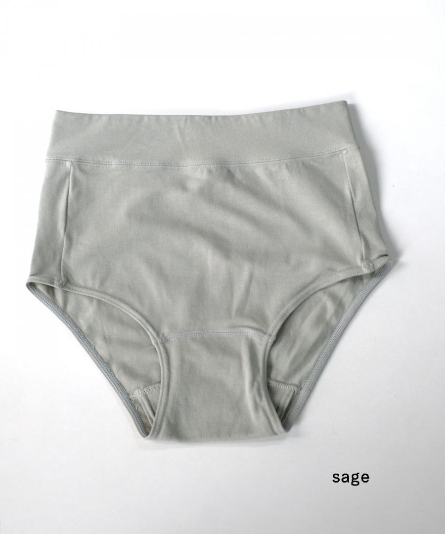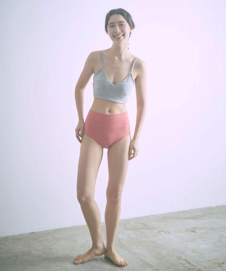 ウェストはゴムを使わず、お腹を覆う丈にし、包み込まれるようなシルエットにしました。