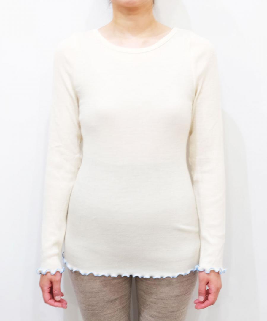 《極細のメリノウールを100%使用し、職人さんが古い編み機で風合い良く編み上げた上質なウールインナーシリーズ。》