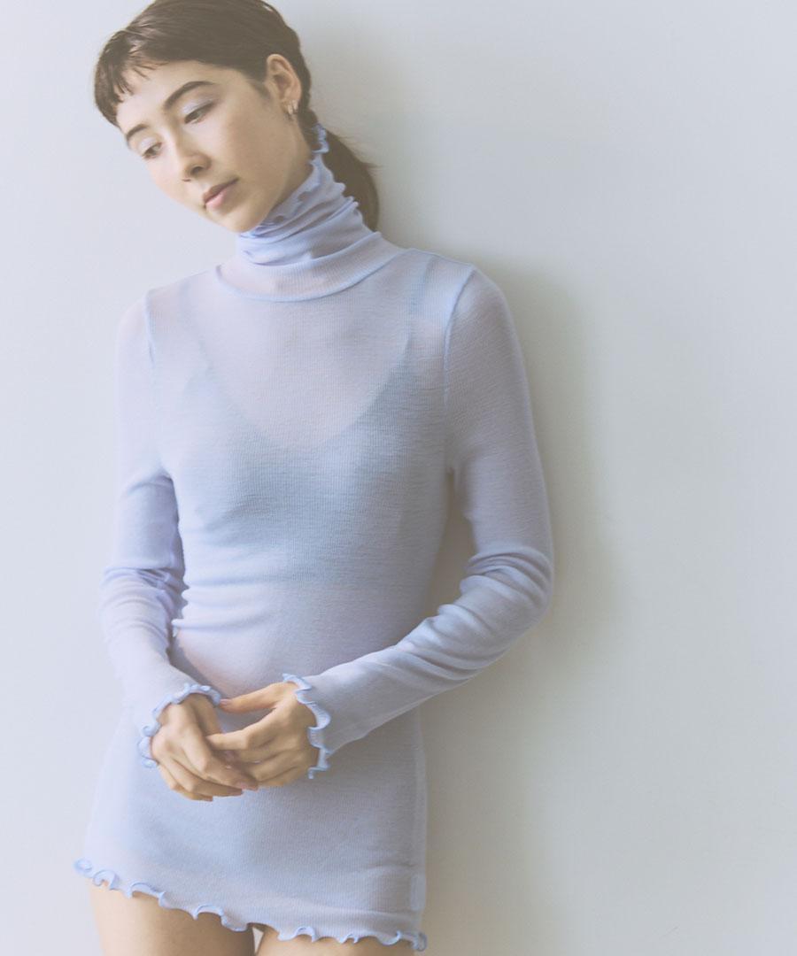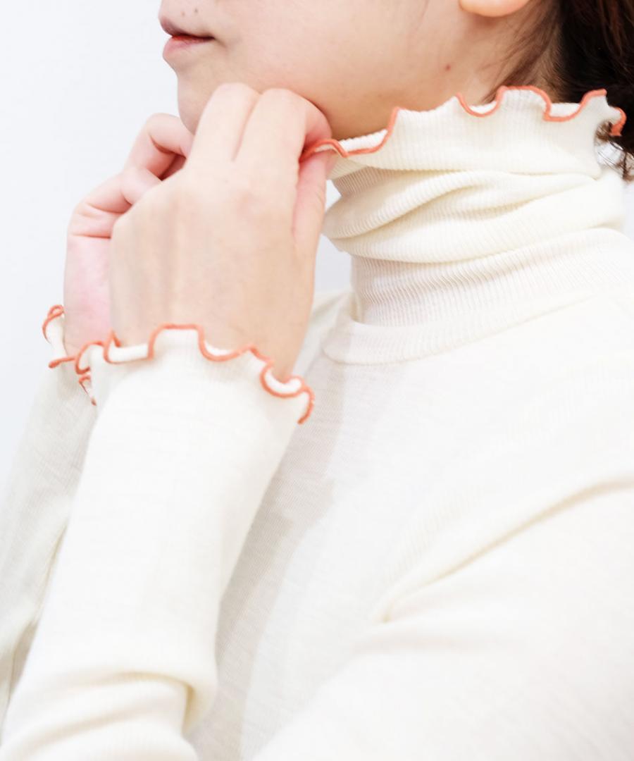 《極細のメリノウールを100%使用し、職人さんが古い編み機で風合い良く編み上げた上質なウールインナーシリーズ。》