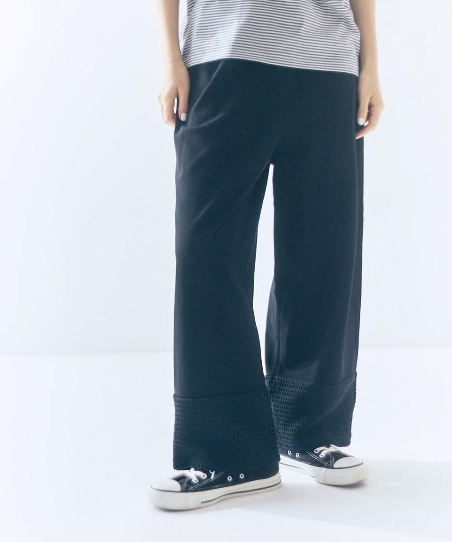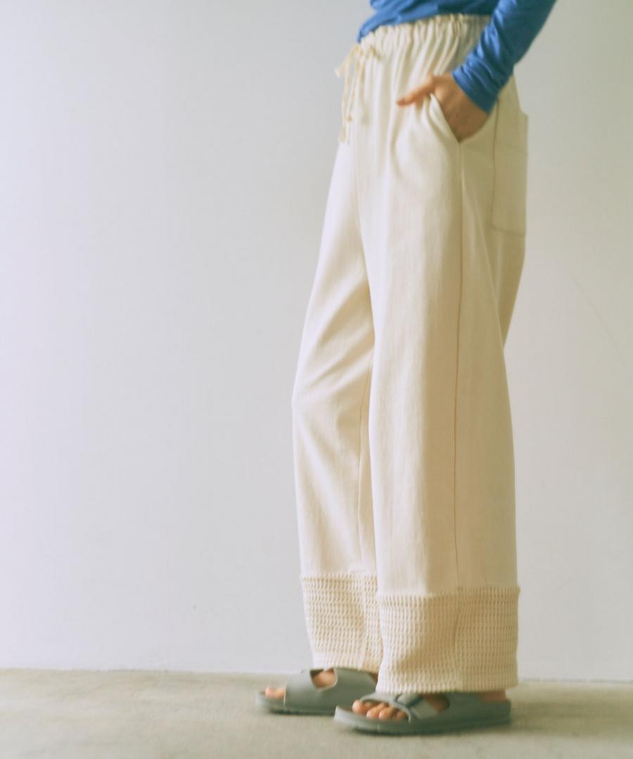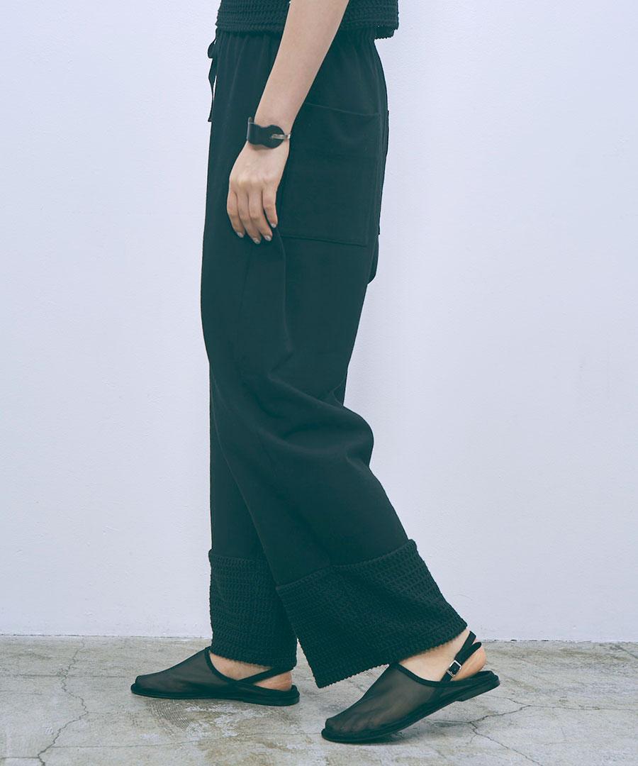 ラッセル素材を切り替えた、イージーパンツです。