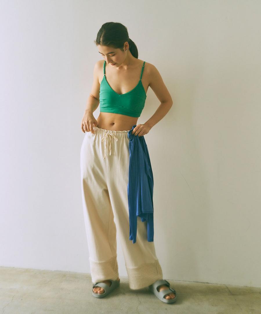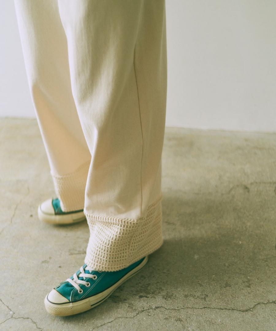 綿かすの入ったナチュラルな生地も風合い良く、季節問わず履いていただけます。
