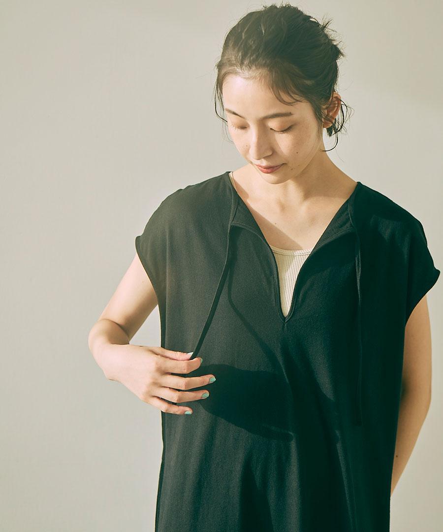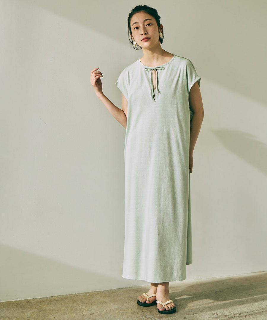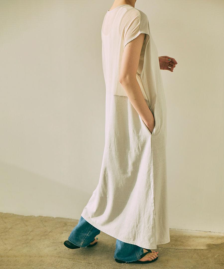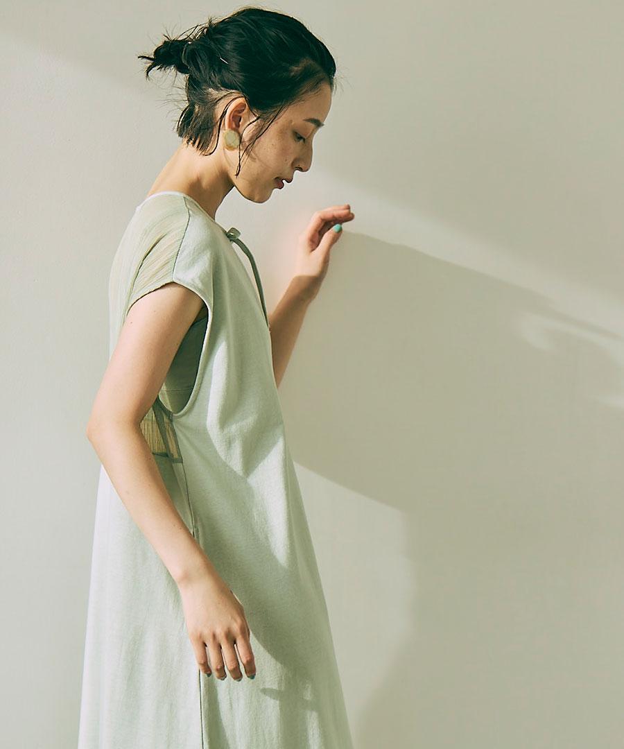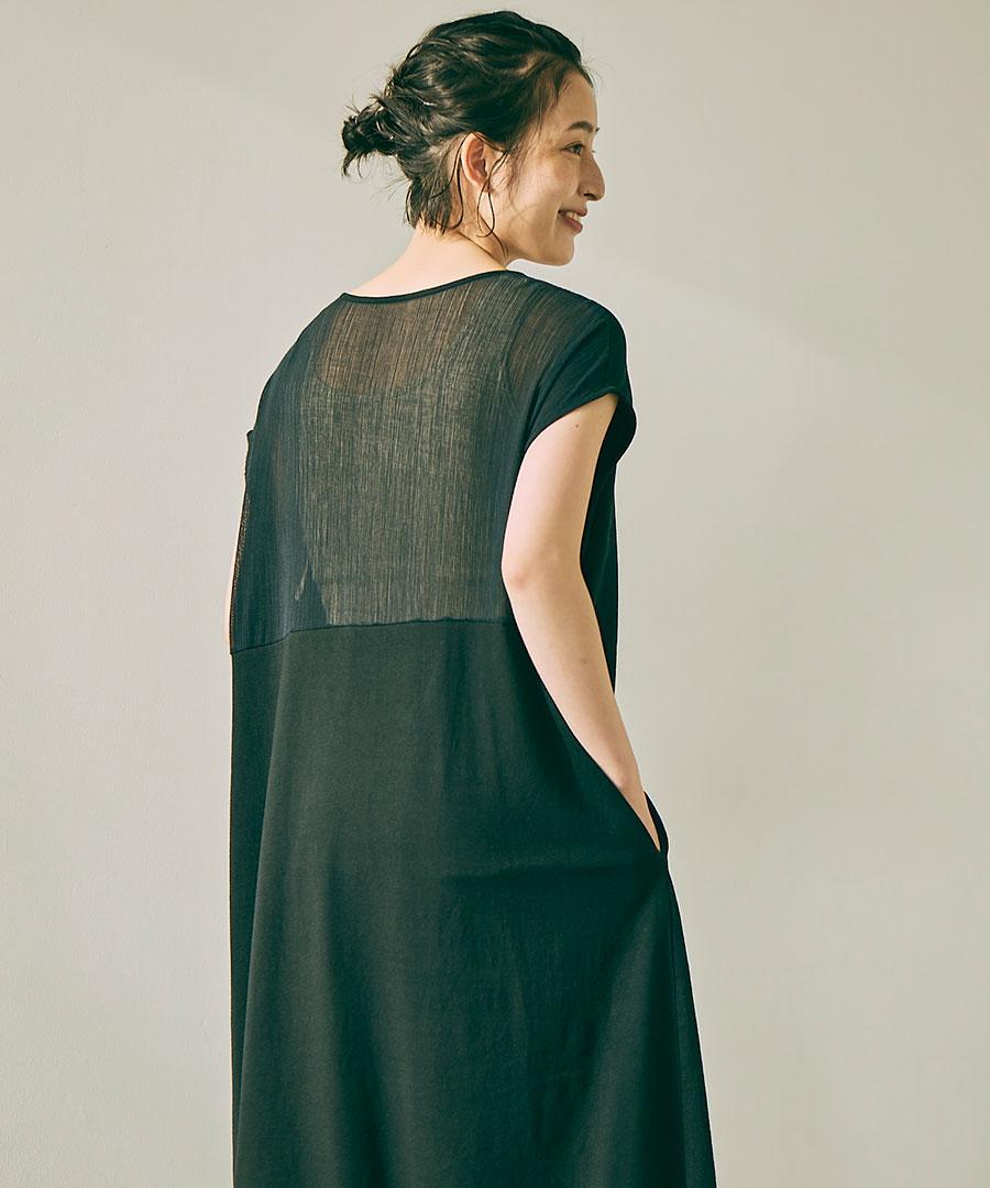 バックスタイルの切り替えをポイントにした、ロングワンピース。