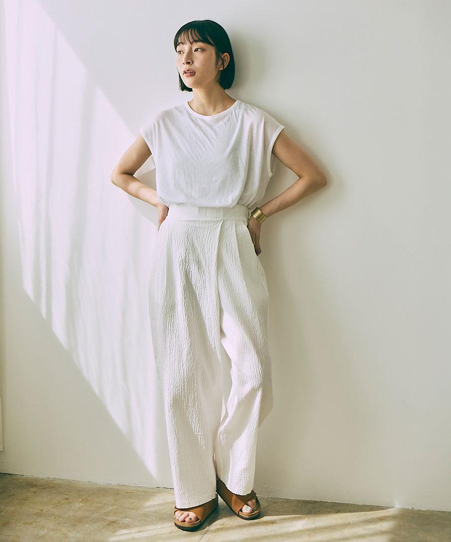 こちらはハイウェストで適度なボリュームシルエットがバランスの良いパンツです。