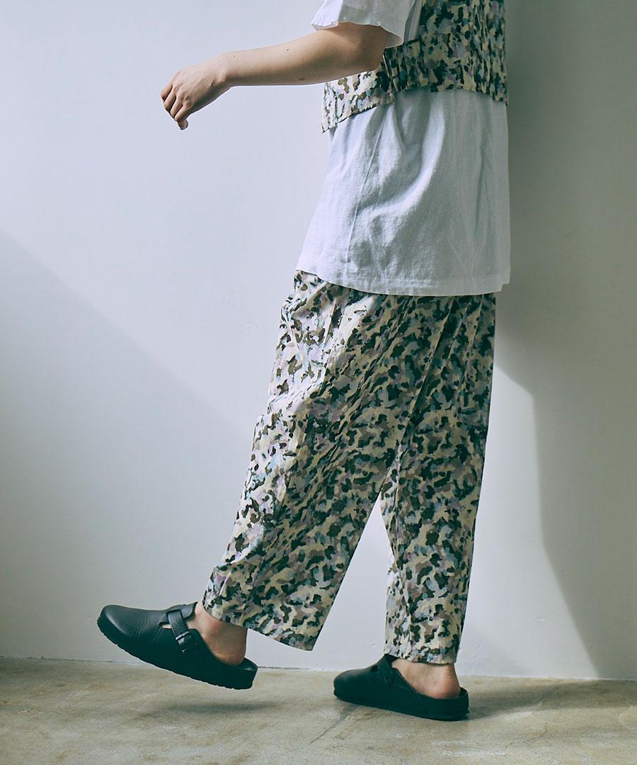 無地のTシャツに合わせても、主役になってくれるような目を引くパンツ。