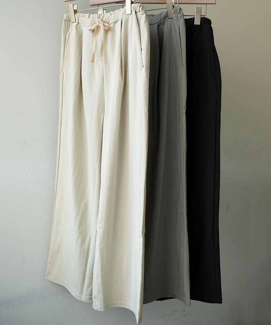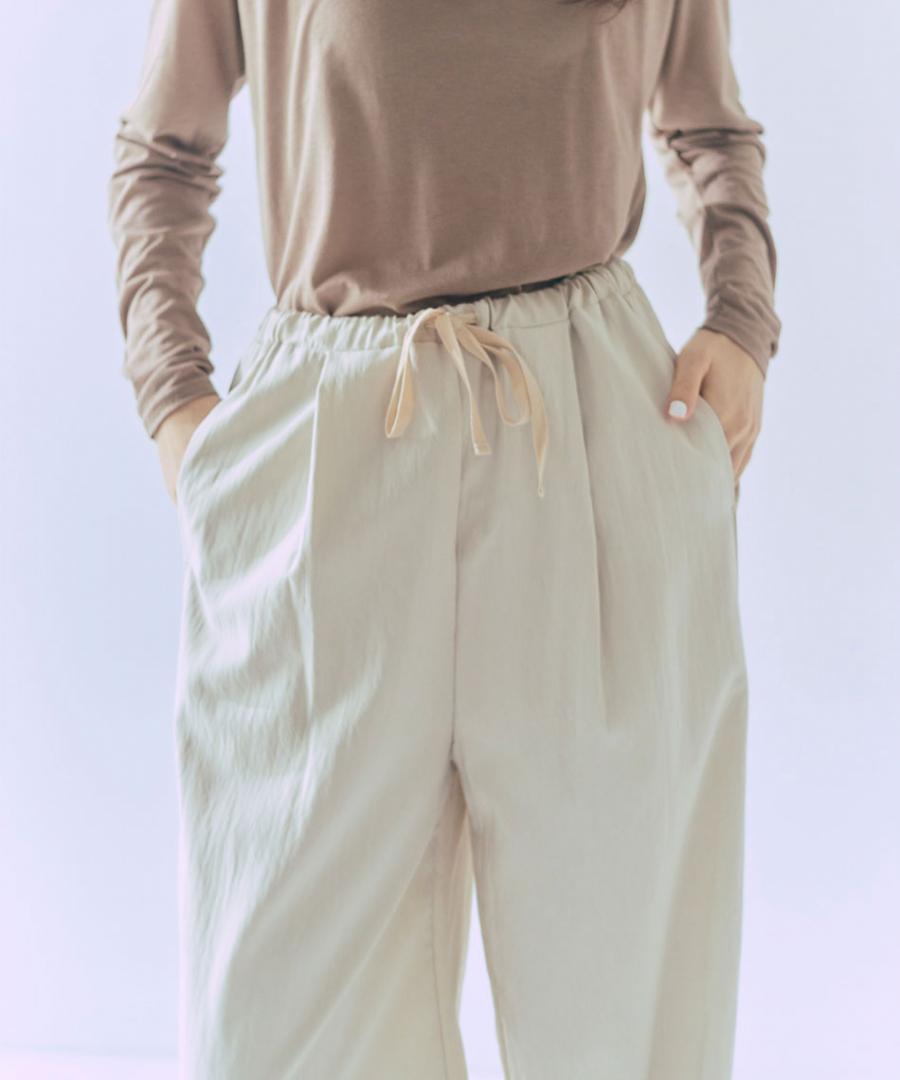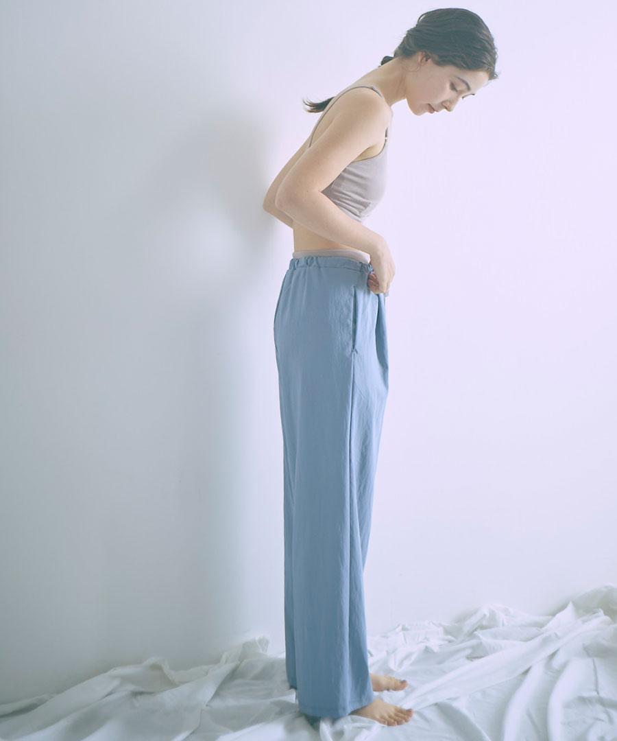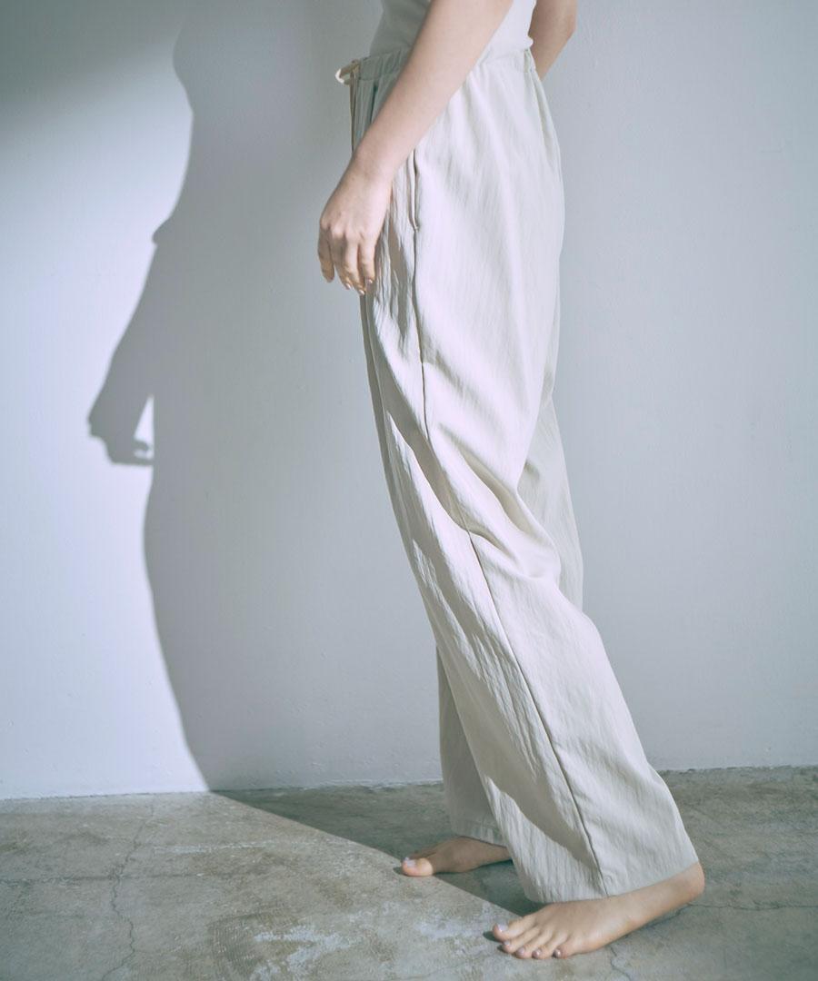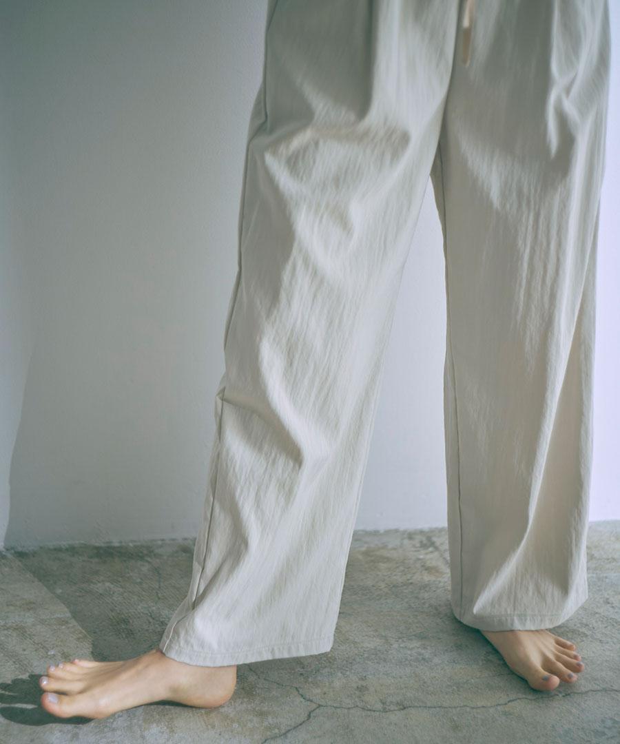 生地を裏使いすることで、さりげなくシュリンクされたマットな質感を生かしたイージーパンツです。