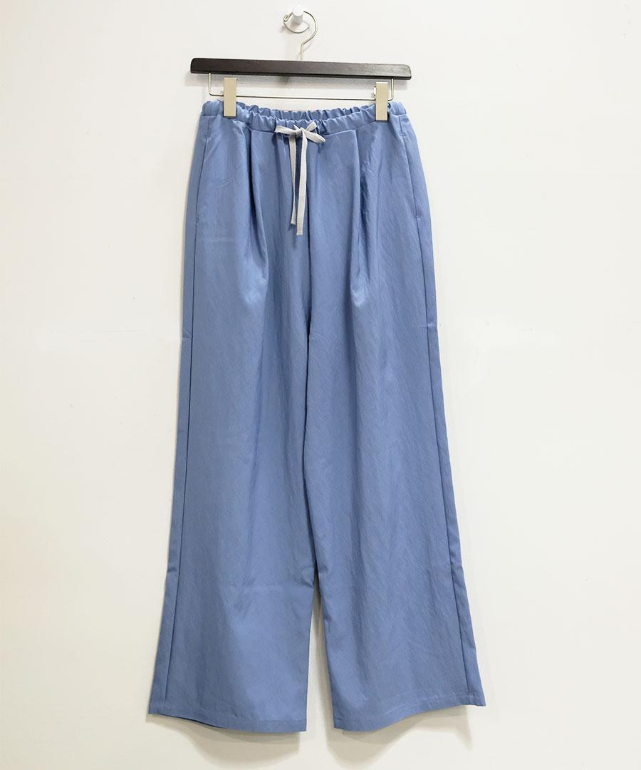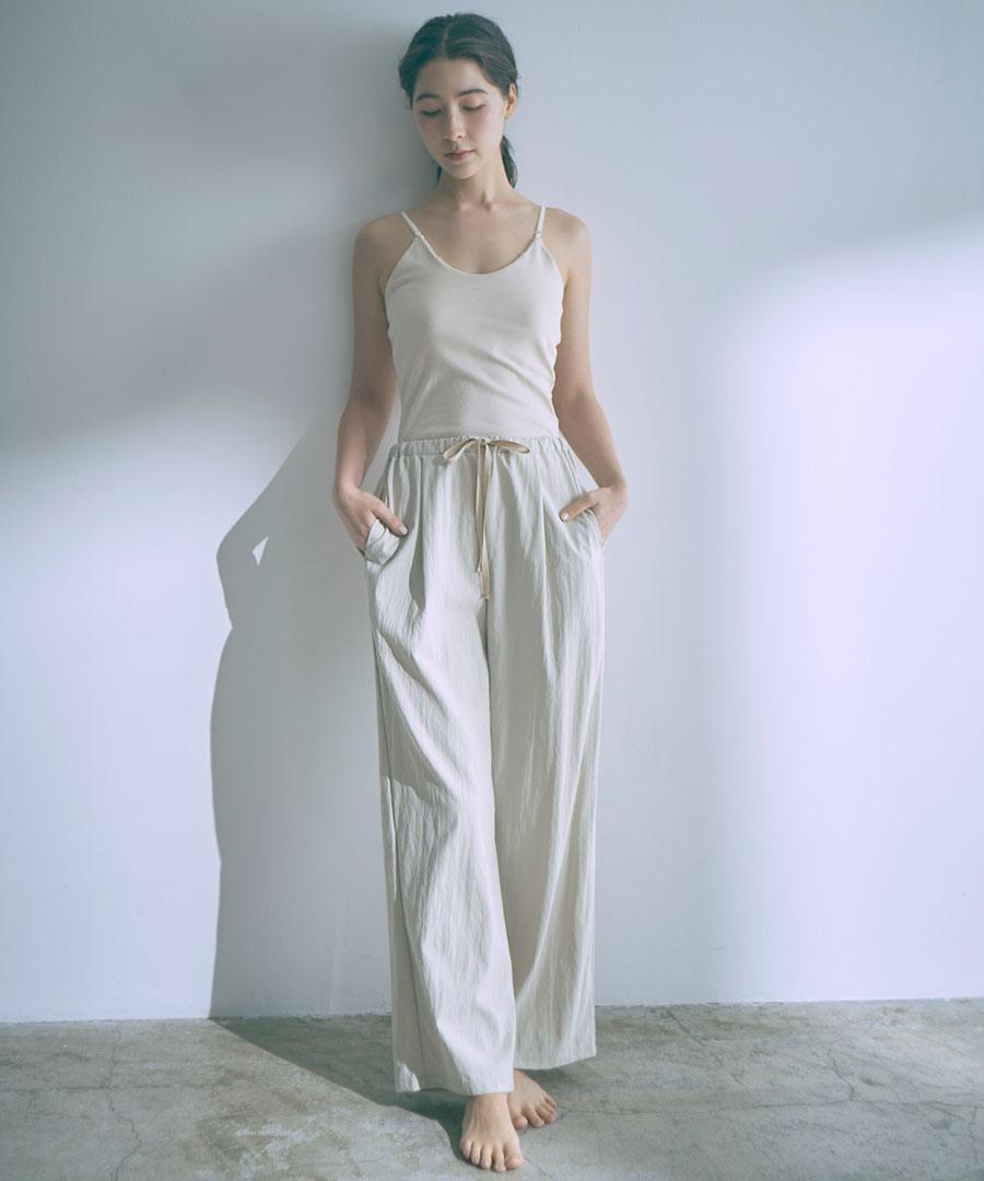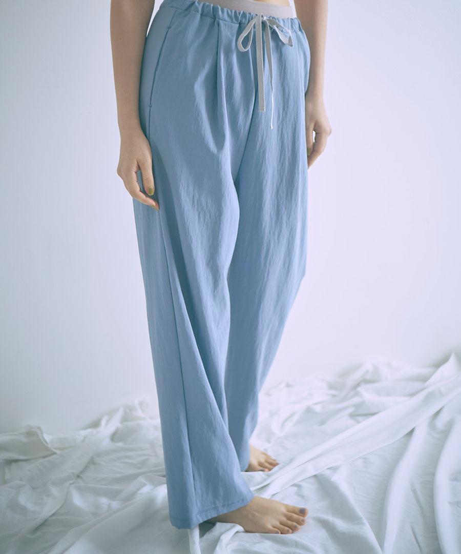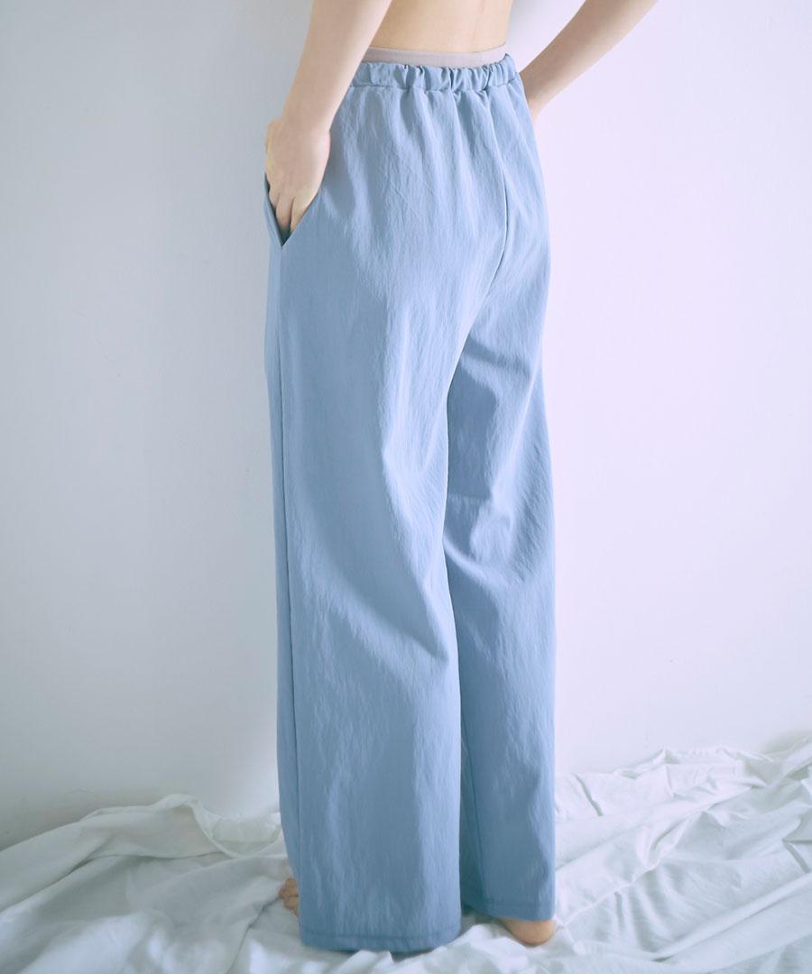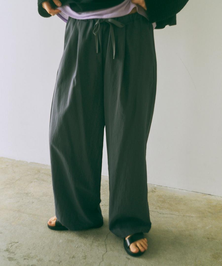 生地を裏使いすることで、さりげなくシュリンクされたマットな質感を生かしたイージーパンツです。