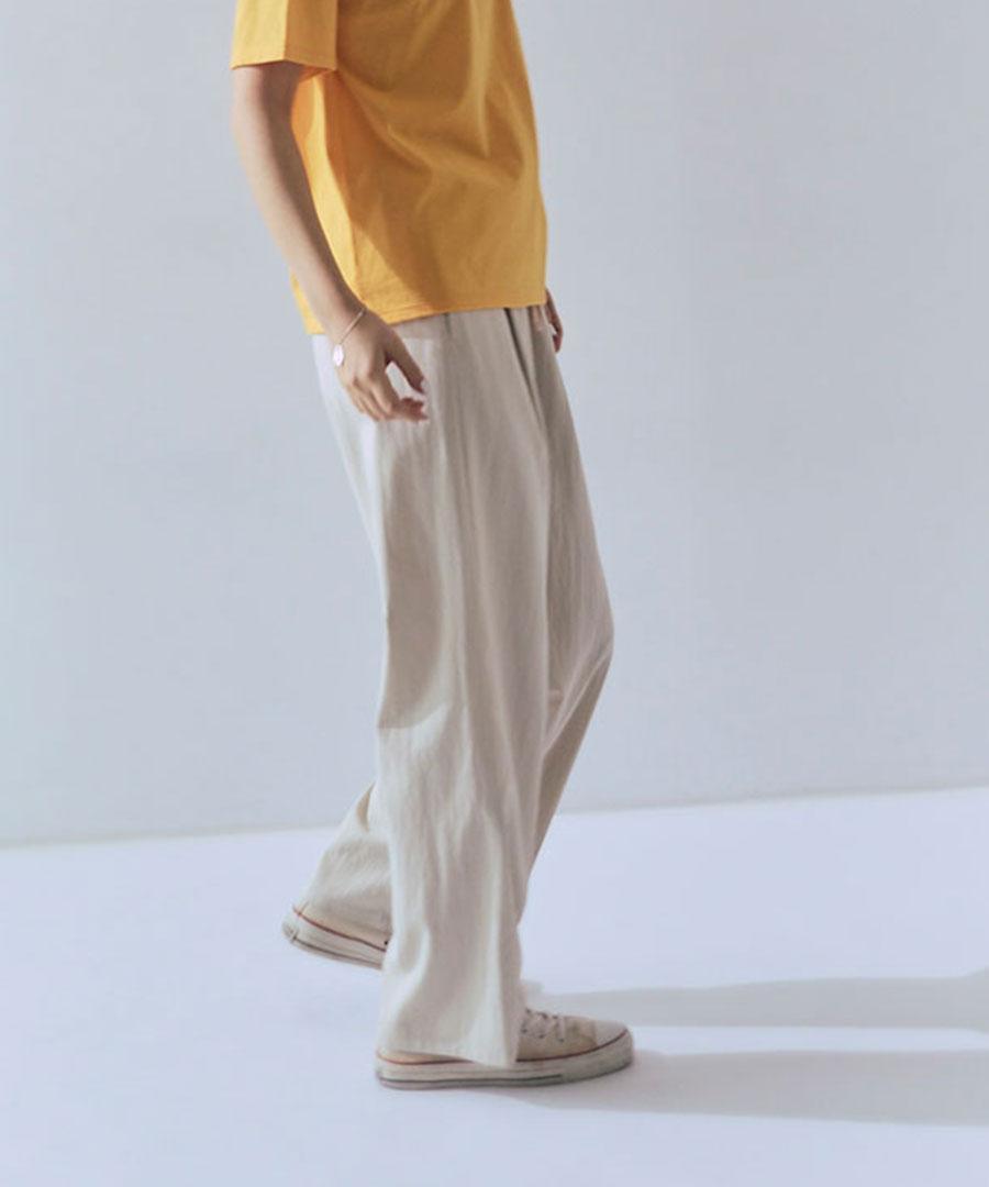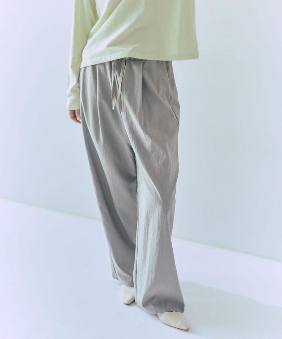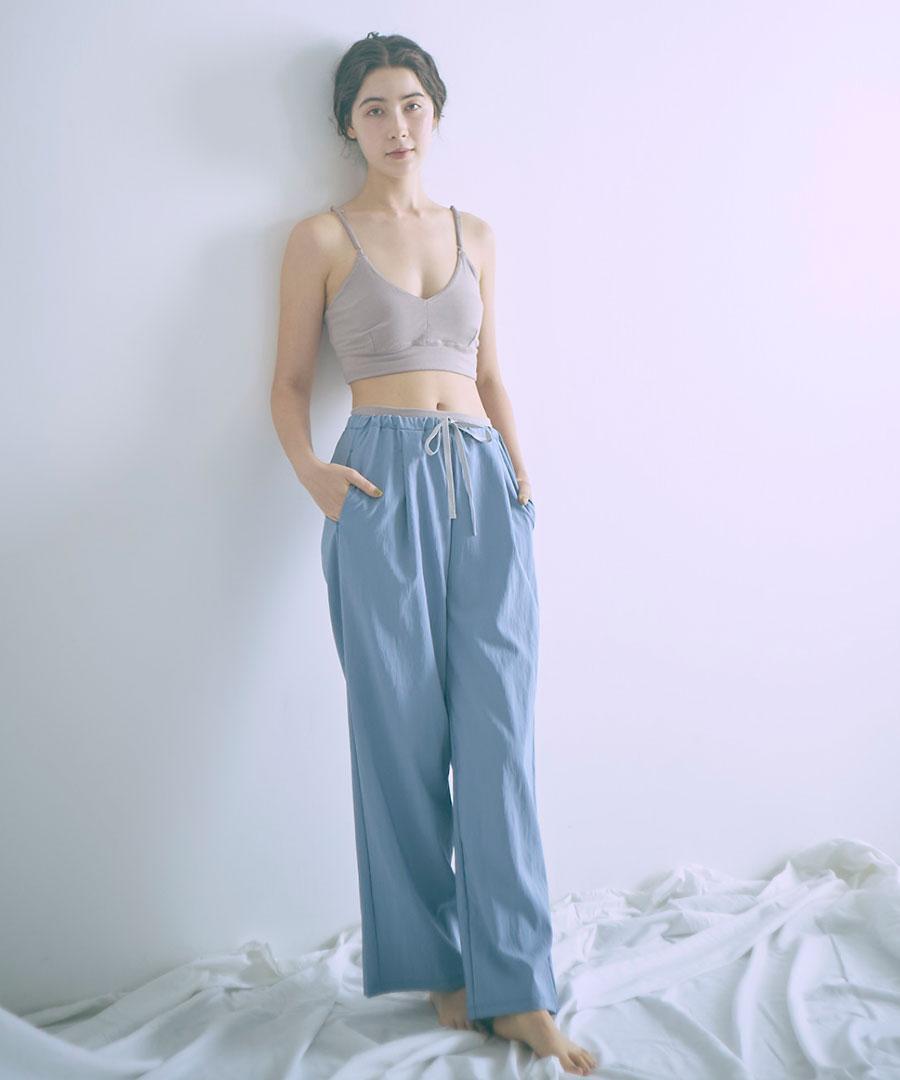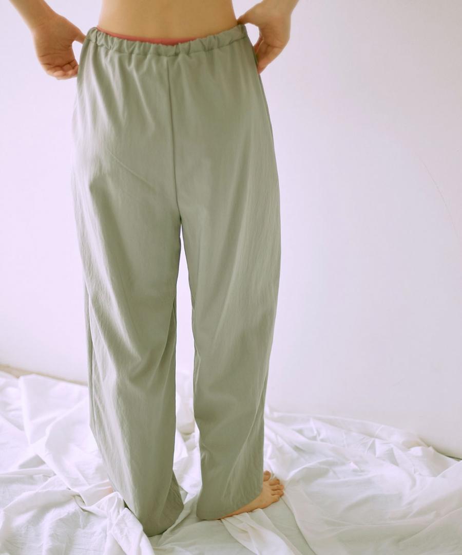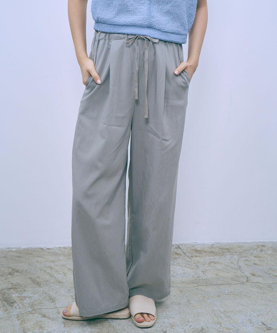 生地を裏使いすることで、さりげなくシュリンクされたマットな質感を生かしたイージーパンツです。