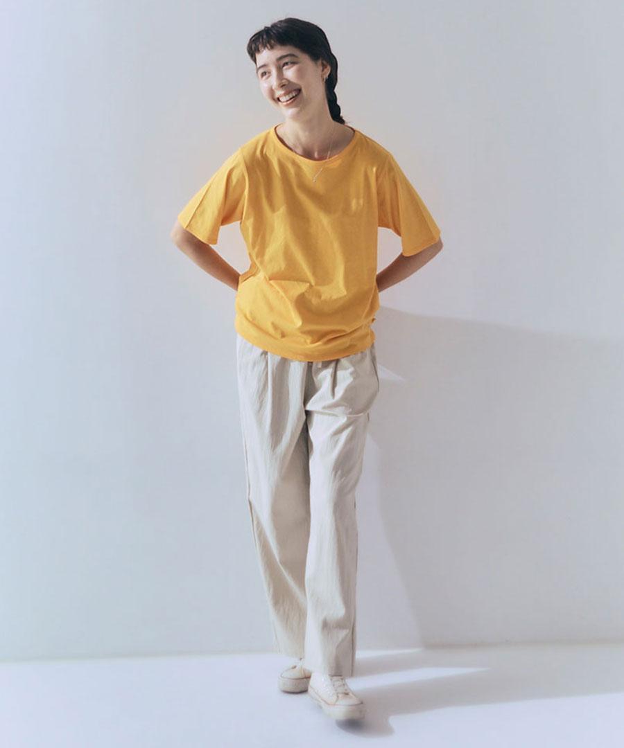 合わせるアイテムによってスポーティーにも上品な印象にもなる素材で、通年使いやすいパンツ。