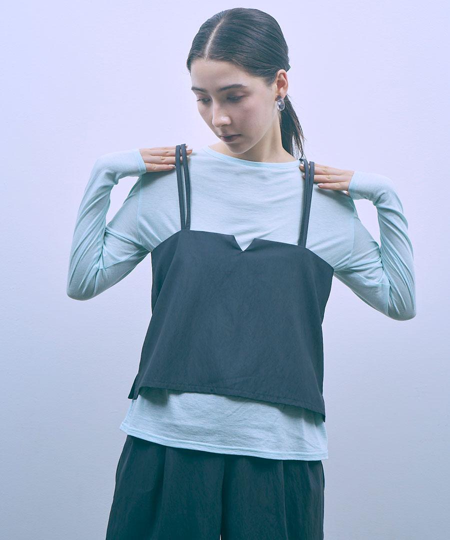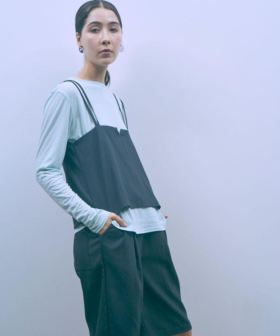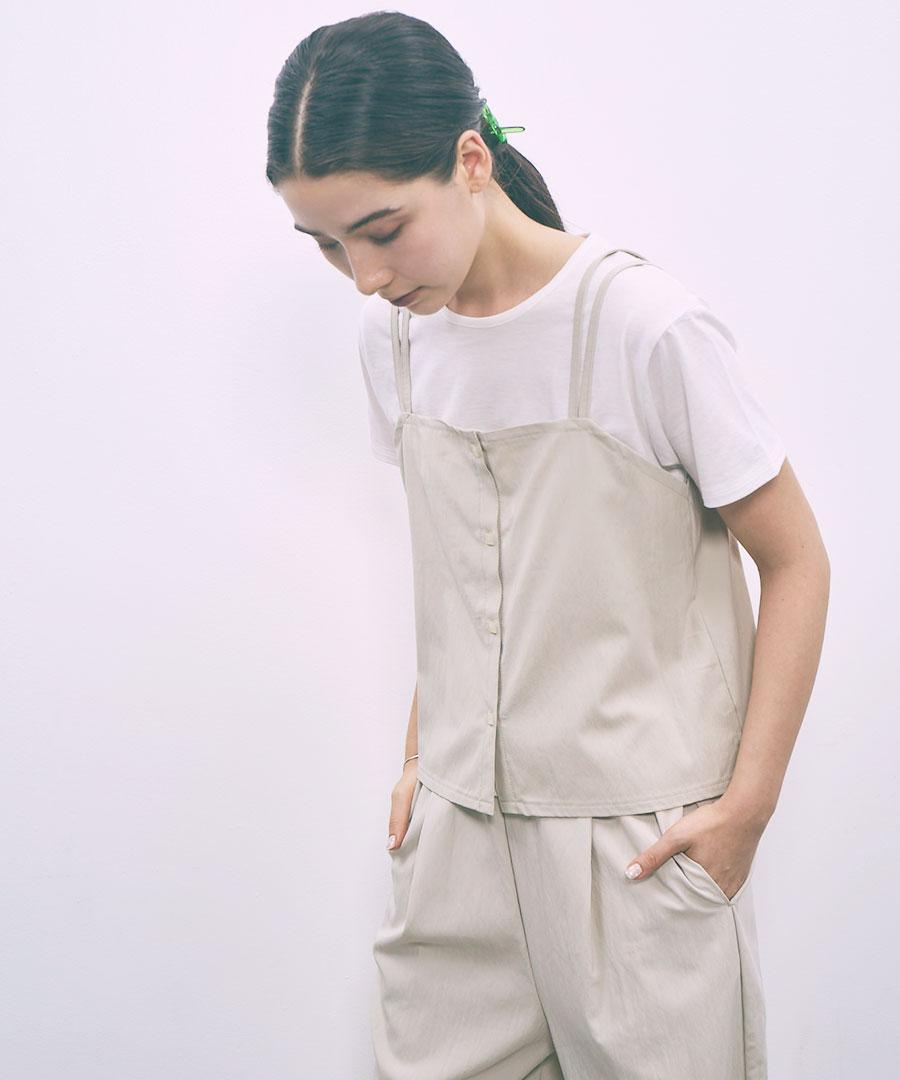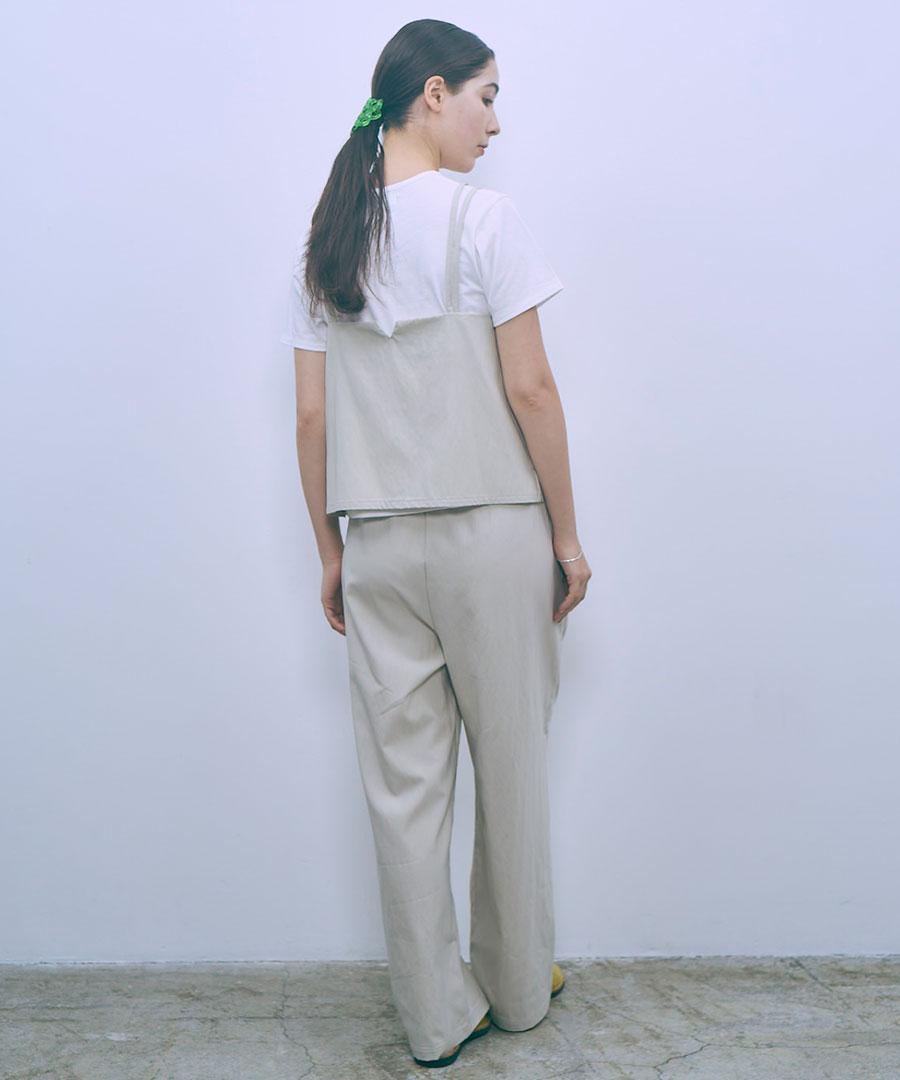 定番で出ているストレートパンツとセットアップで着て頂けるキャミベスト。