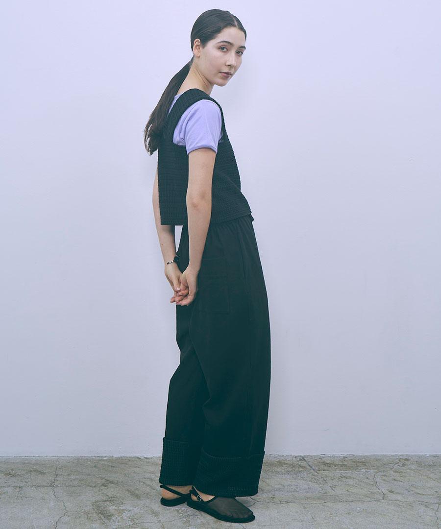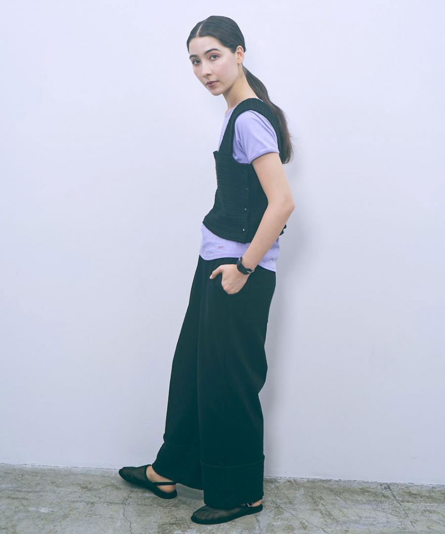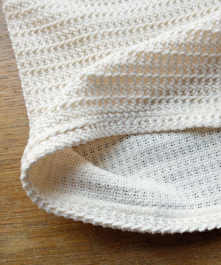 軽い印象のワッフル素材で、ニット見えするので通年着回せます。