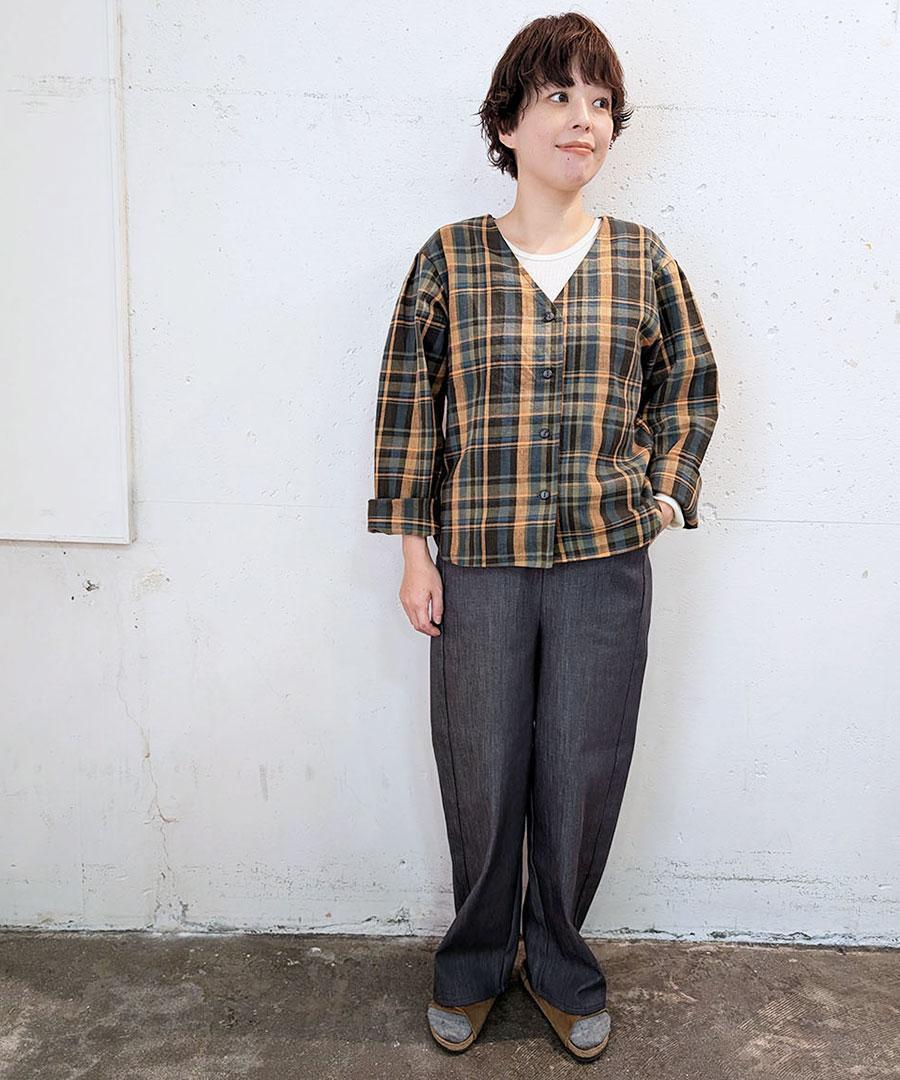 インナーにカットソーなどを着てラフな感じでどうぞ。