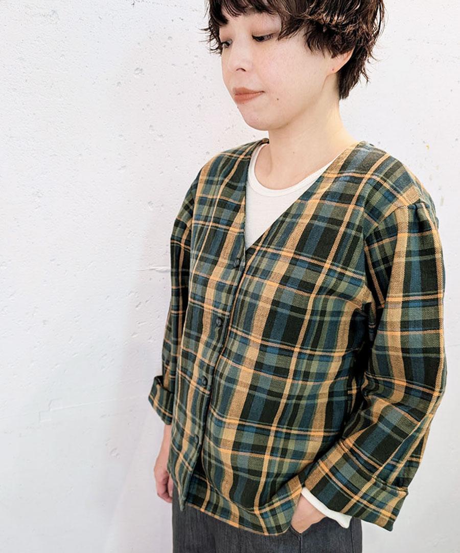 古くから使われている精紡機で紡がれたスラブ糸を使用した、中肉厚のツイルチェック。
