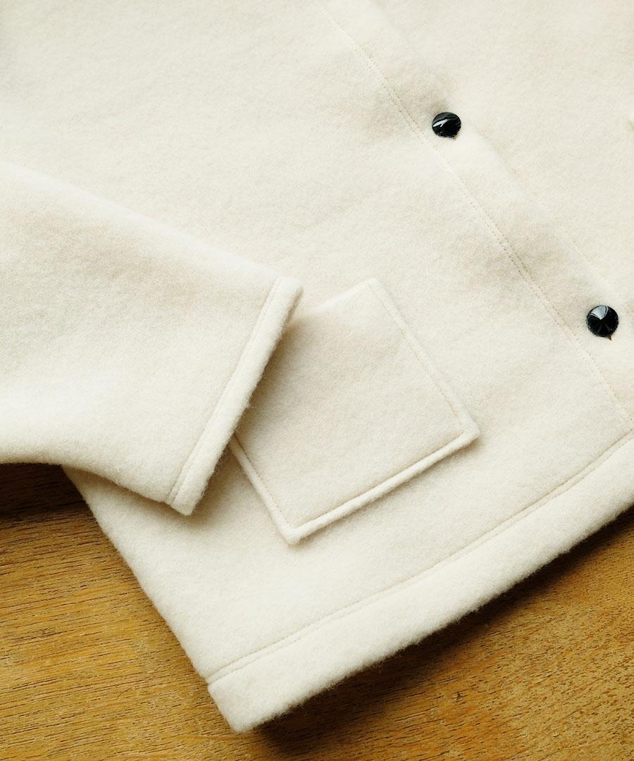 表のウール100%の面に何度も起毛を繰り返すことで実現しています。