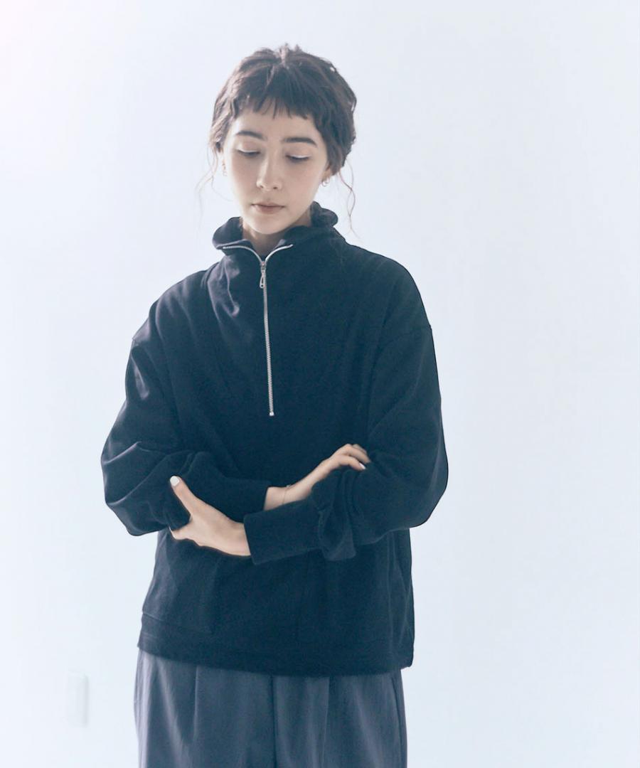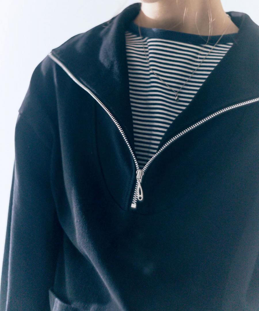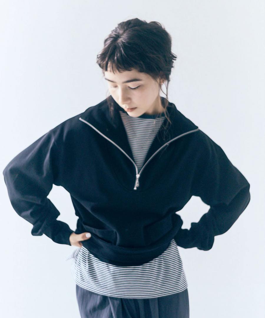 ジップアップを閉じても開いても着こなしの幅が広がる1枚。