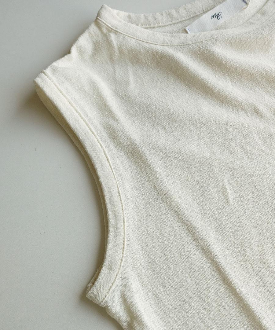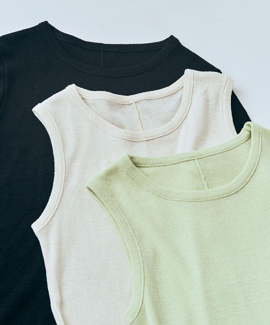 天竺編み・・・薄手でさらりとしたマットな質感とネップがこなれた印象です。Tシャツ、ロングスリーブ、タンクトップの3型。