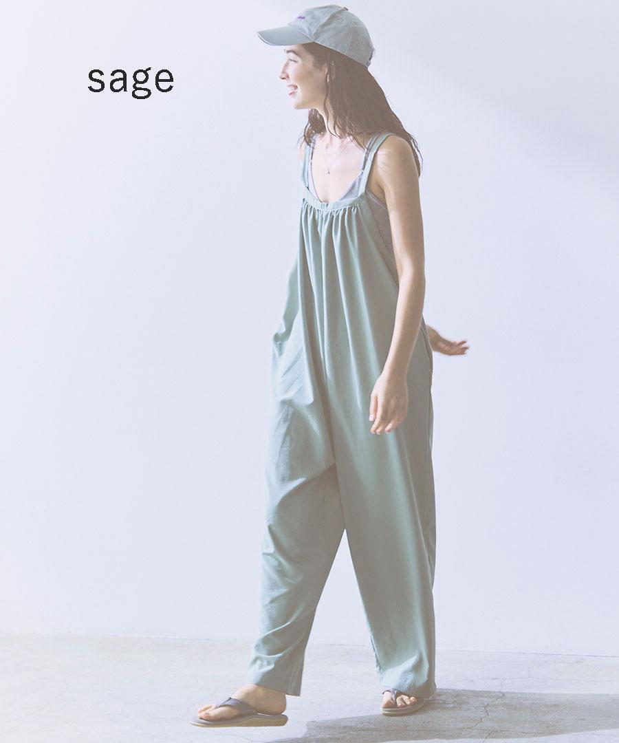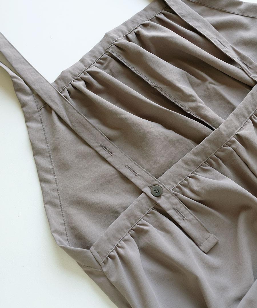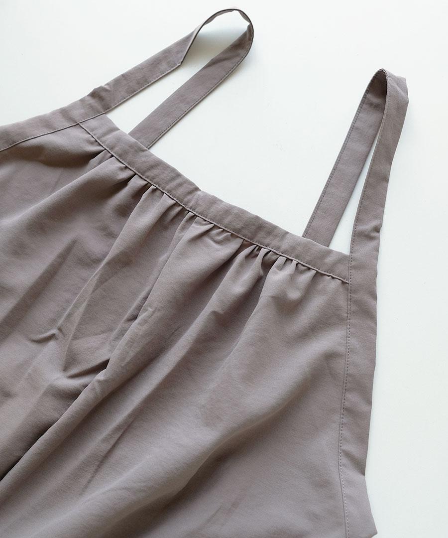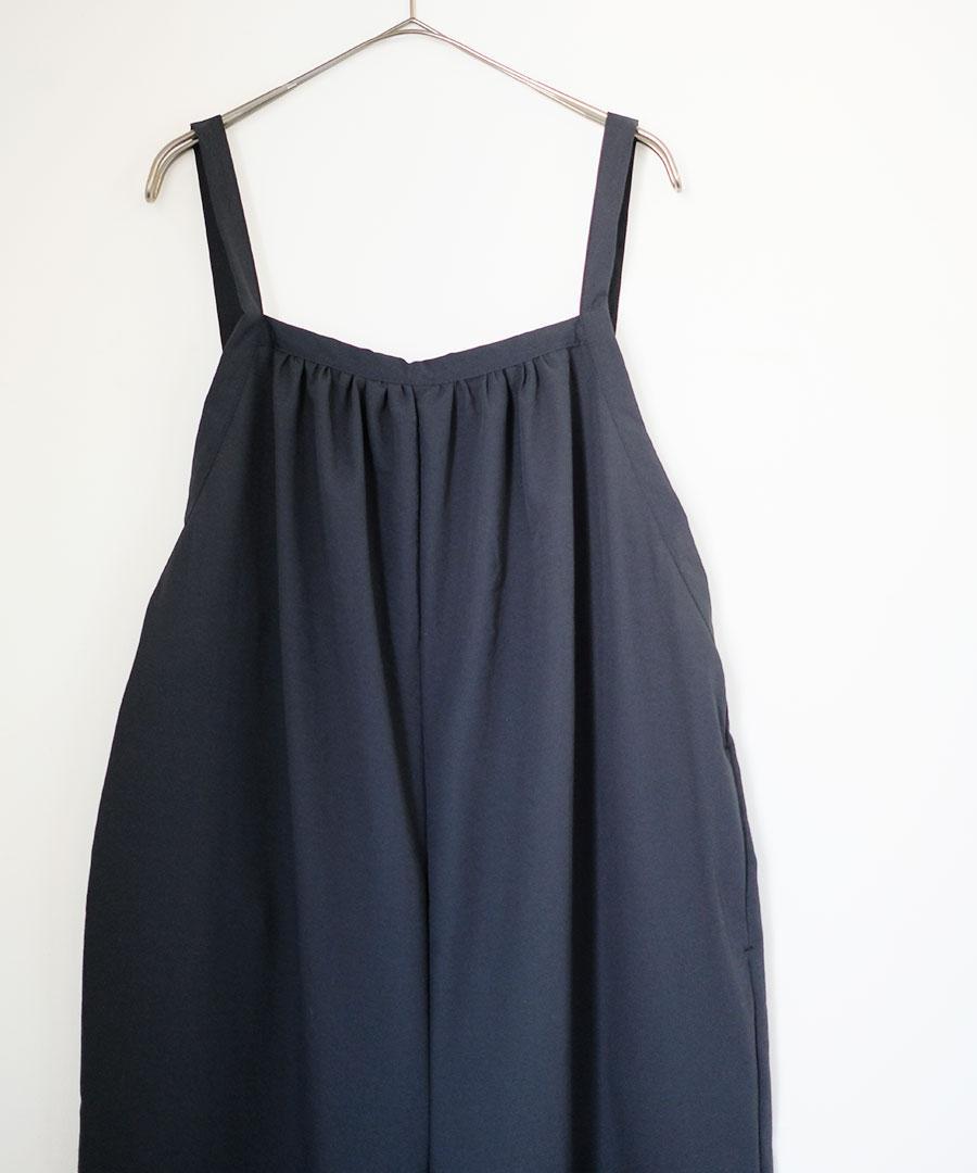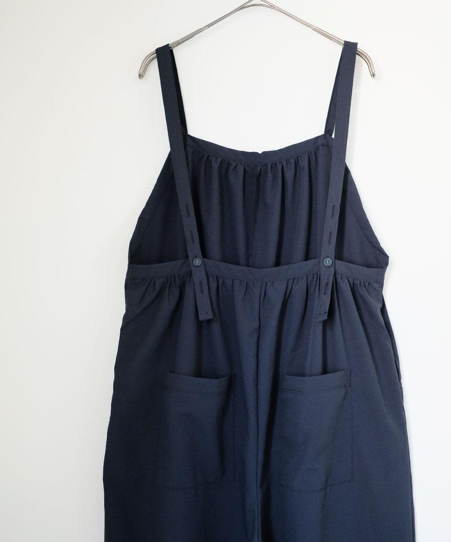 ストンと落ちるシルエットで、シワになりにくく着やすいサロペットです。