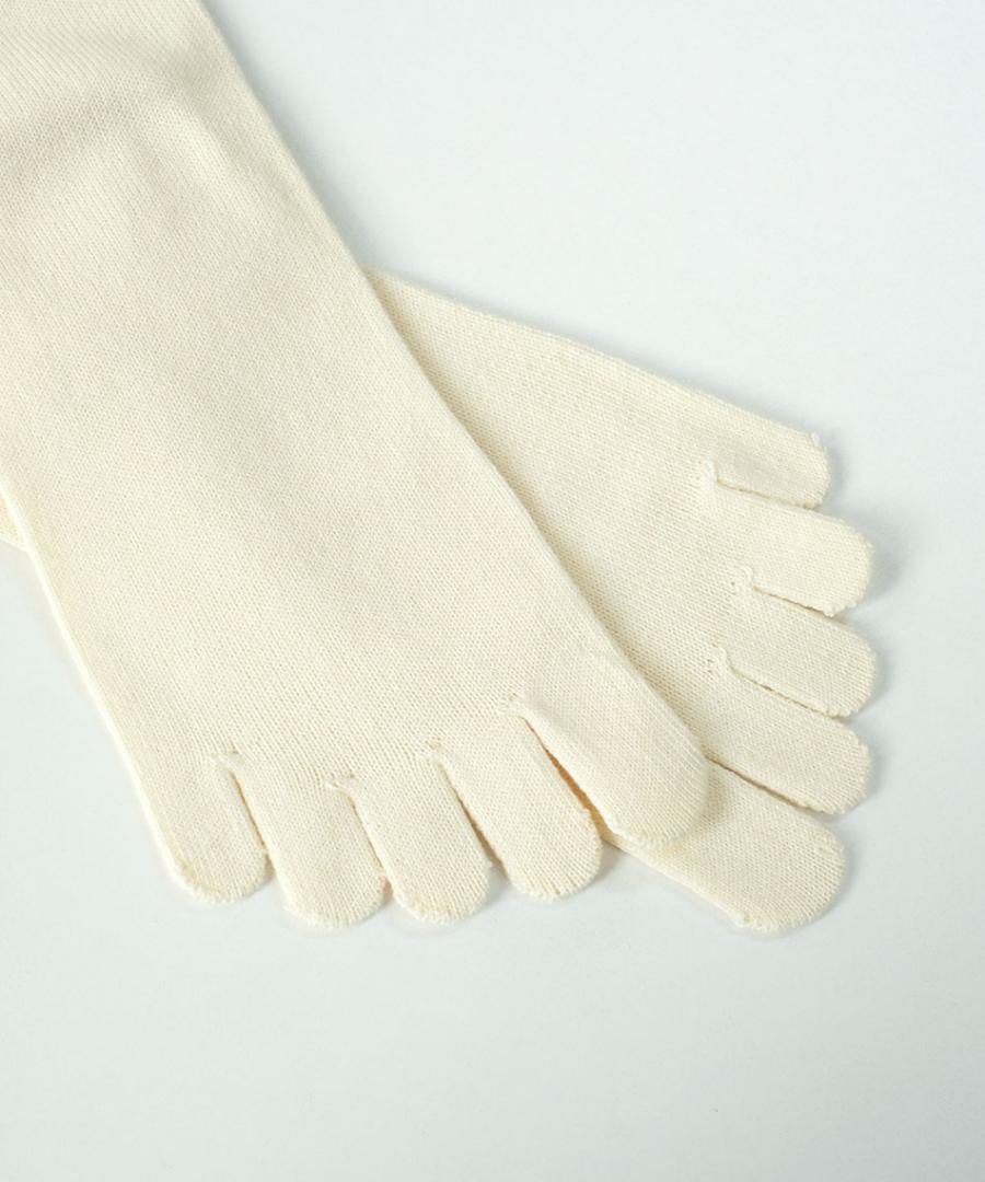 使用した絹紡糸はやわらかな肌触りと光沢があり、吸湿や吸汗性に優れ、さらりとした履き心地が特徴です。