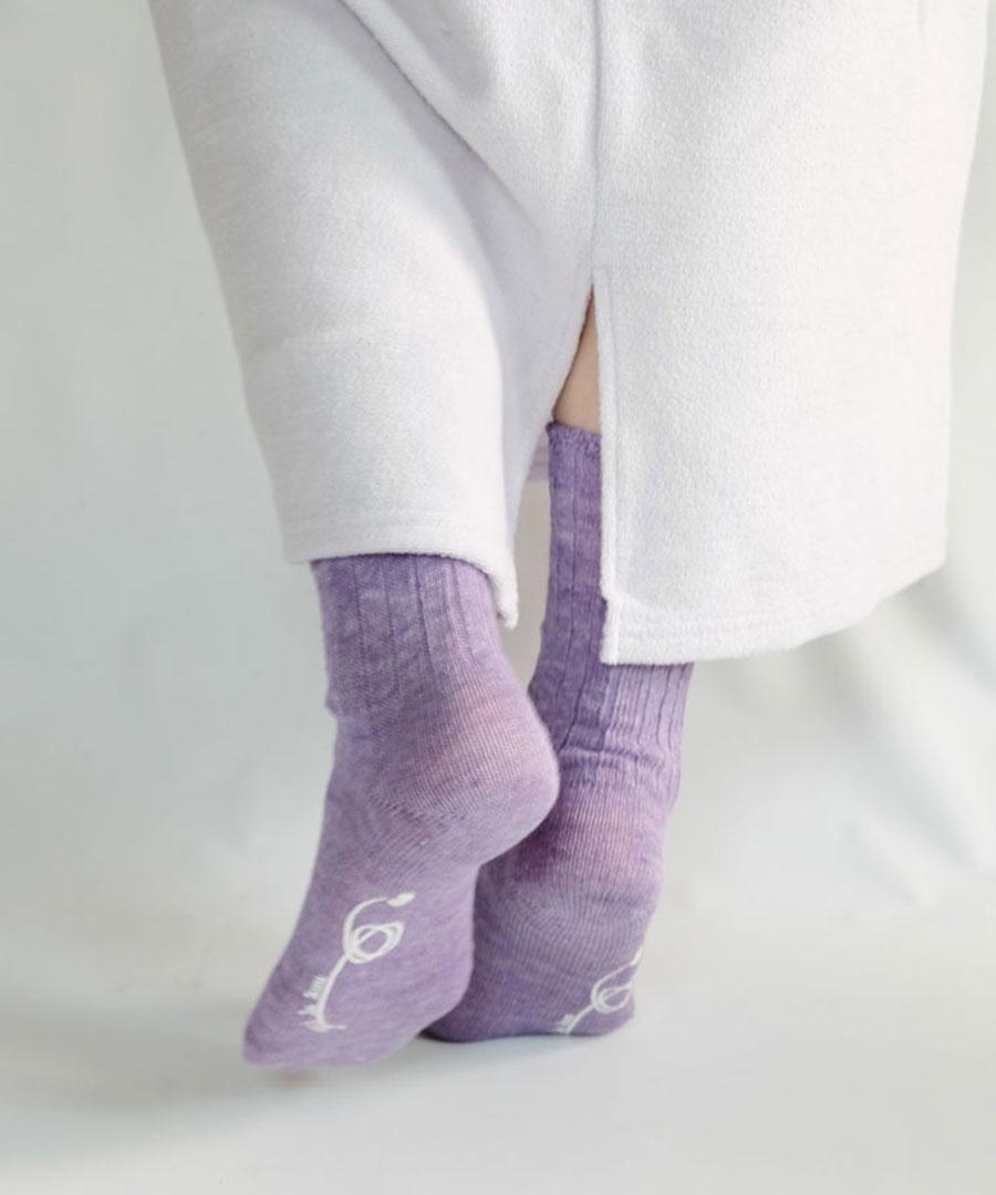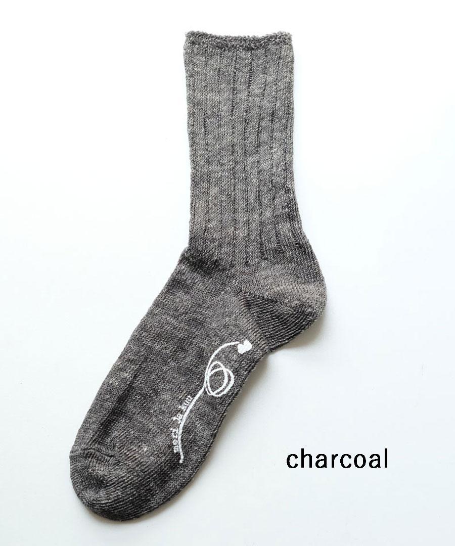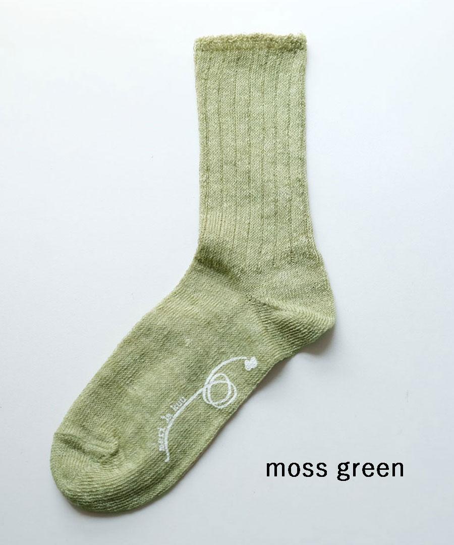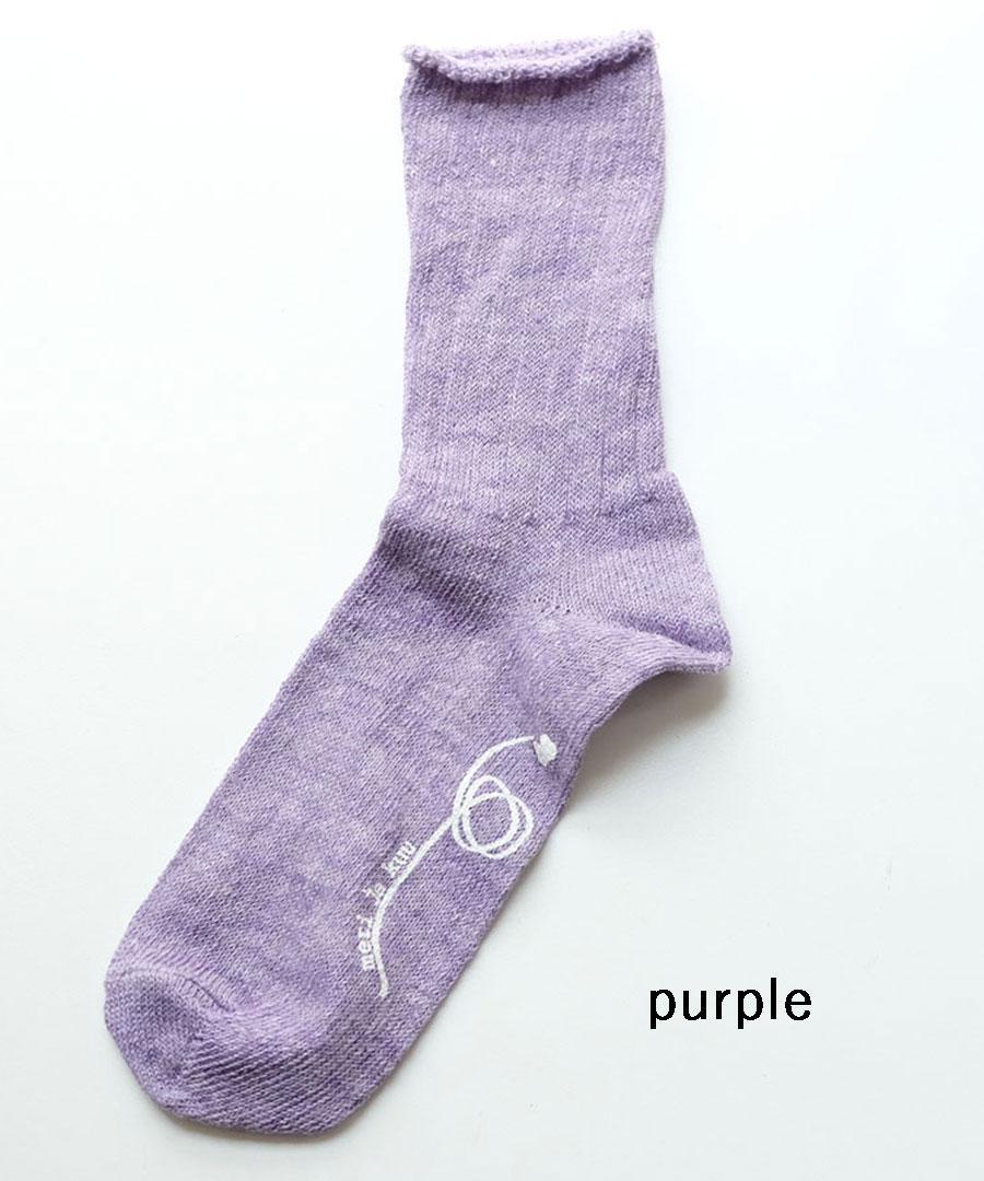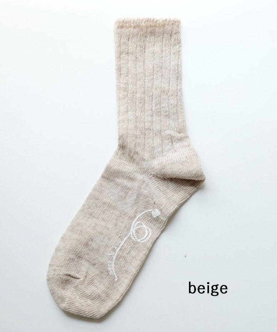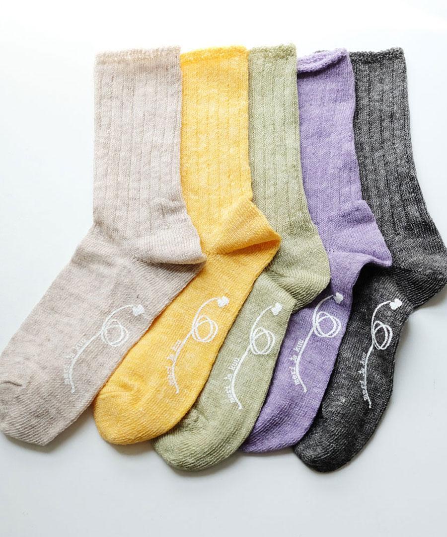 清涼感のあるさらりとした麻糸を使用し、リブ編みで伸び良く編んだシンプルなソックスです。