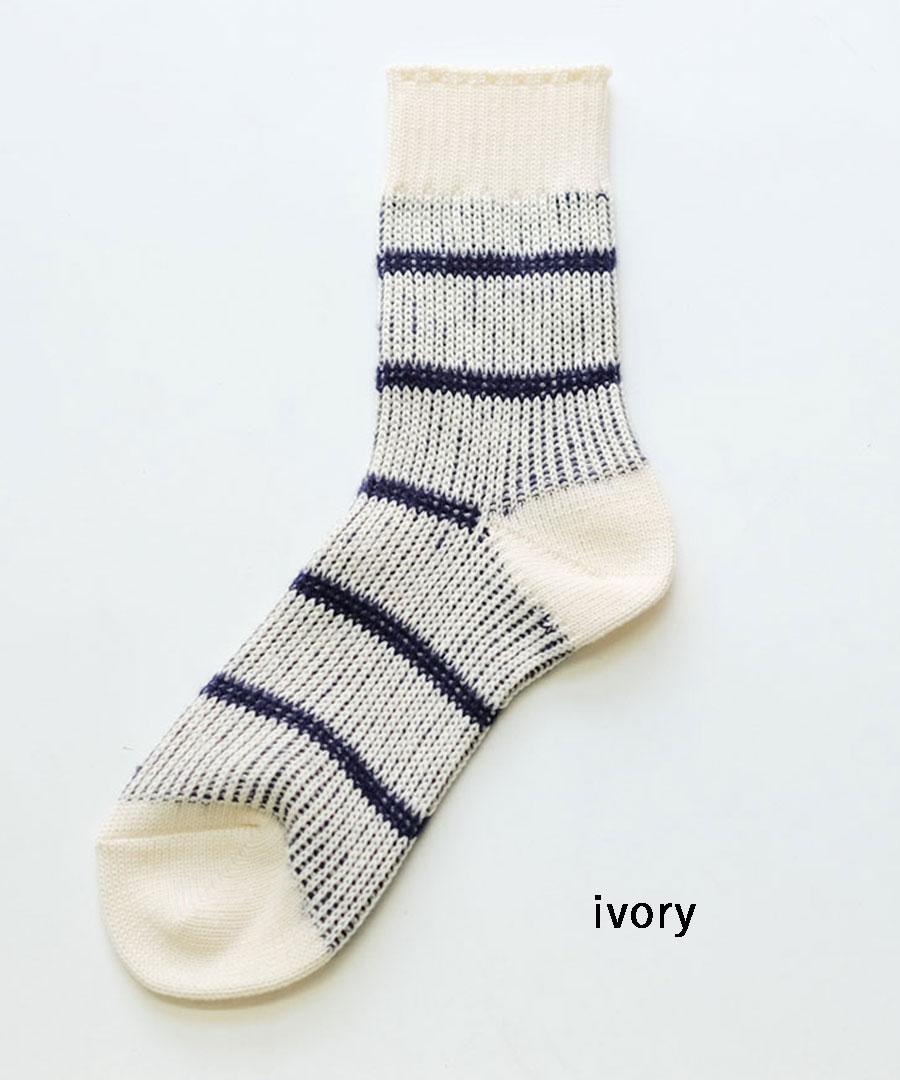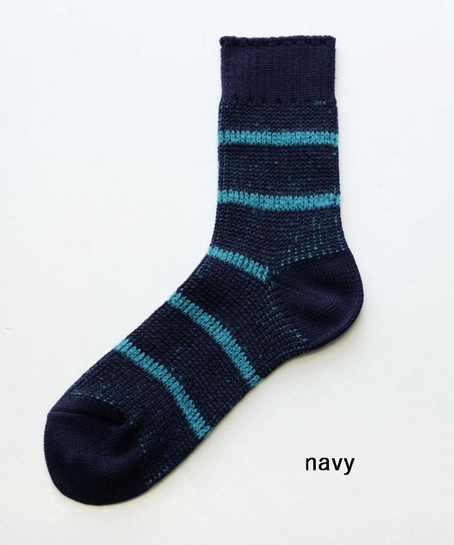 ジャガード機で編み上げたドットとボーダーの靴下です。