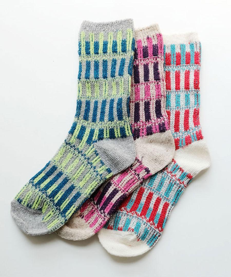 カラフルに編んだ靴下です。