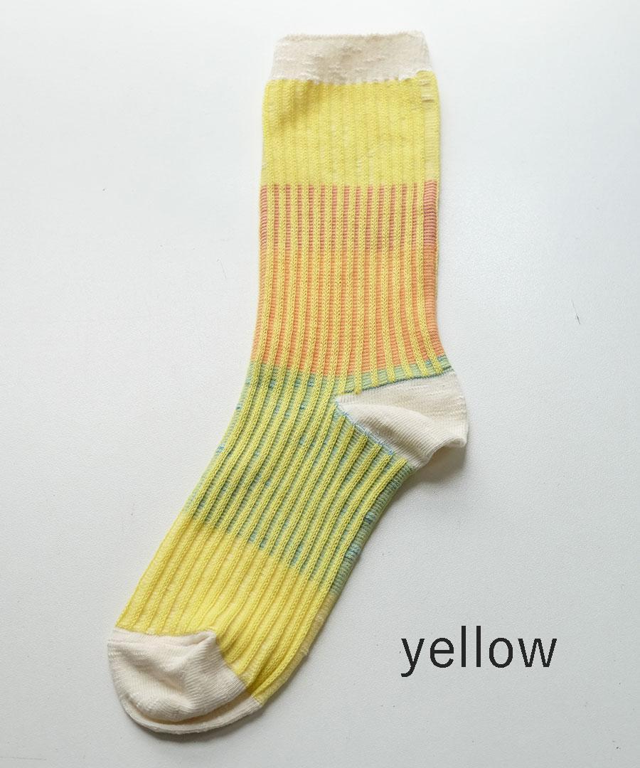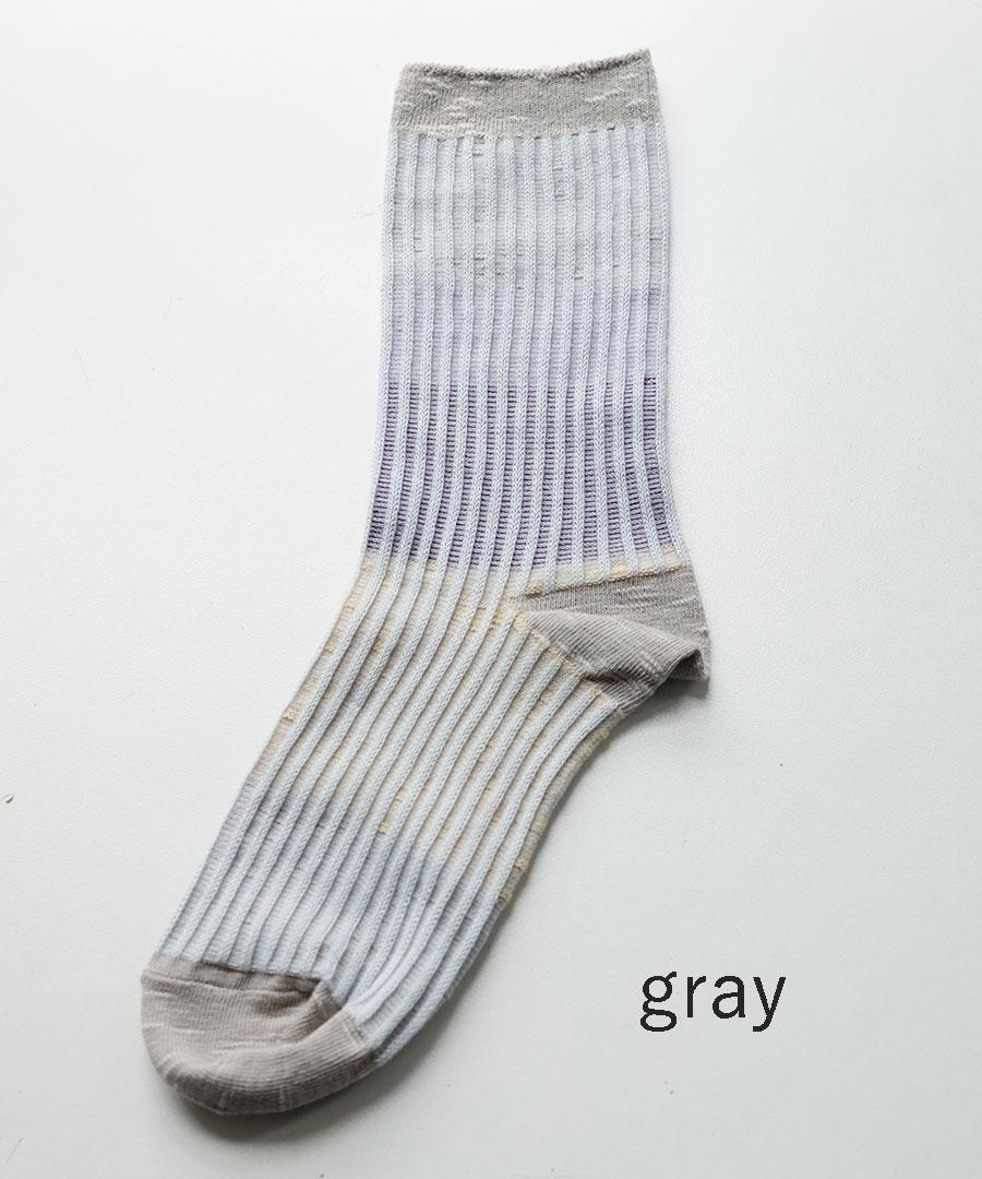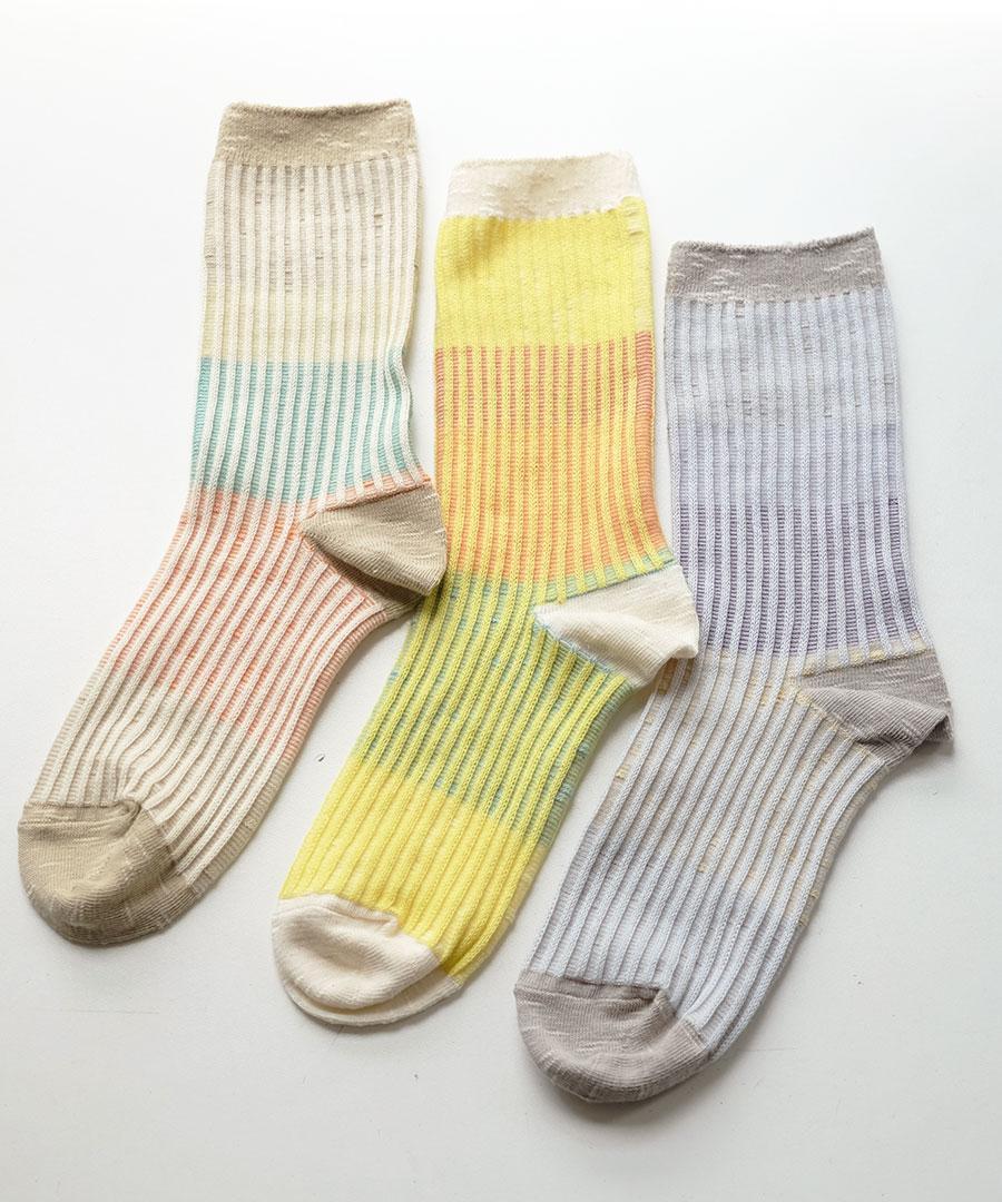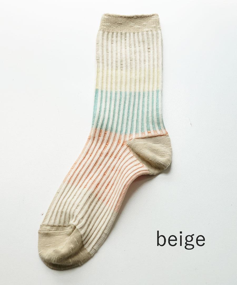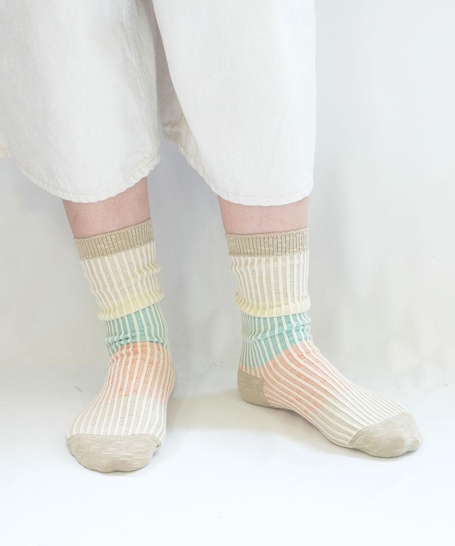 ストライプとボーダーを組み合わせた柄で編んだ靴下です。