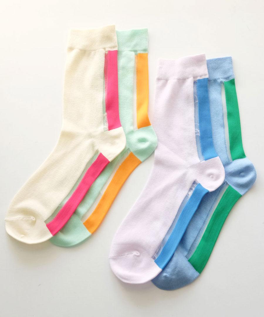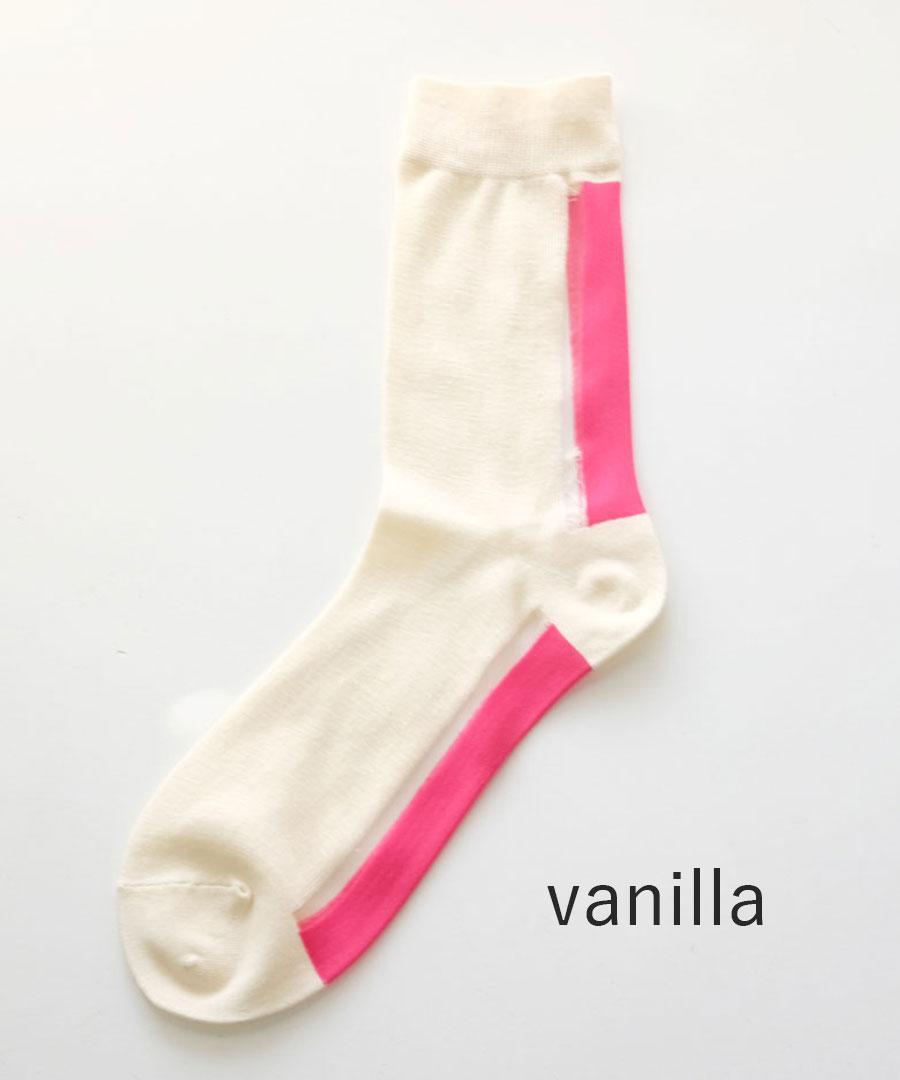 コットンをベースに薄手に編み上げた靴下。