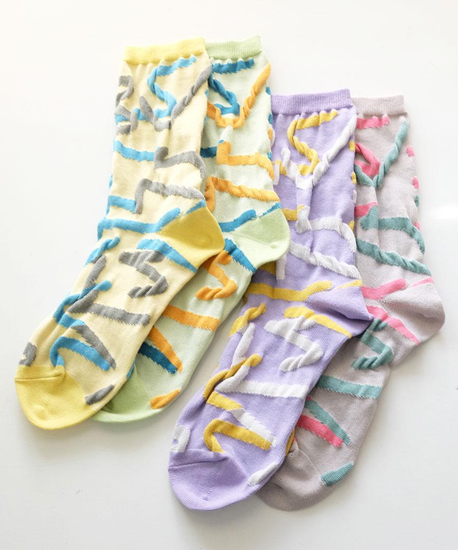 独特の凹凸感を楽しめる靴下を作りました。