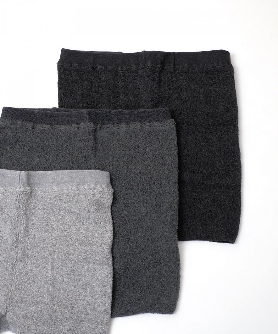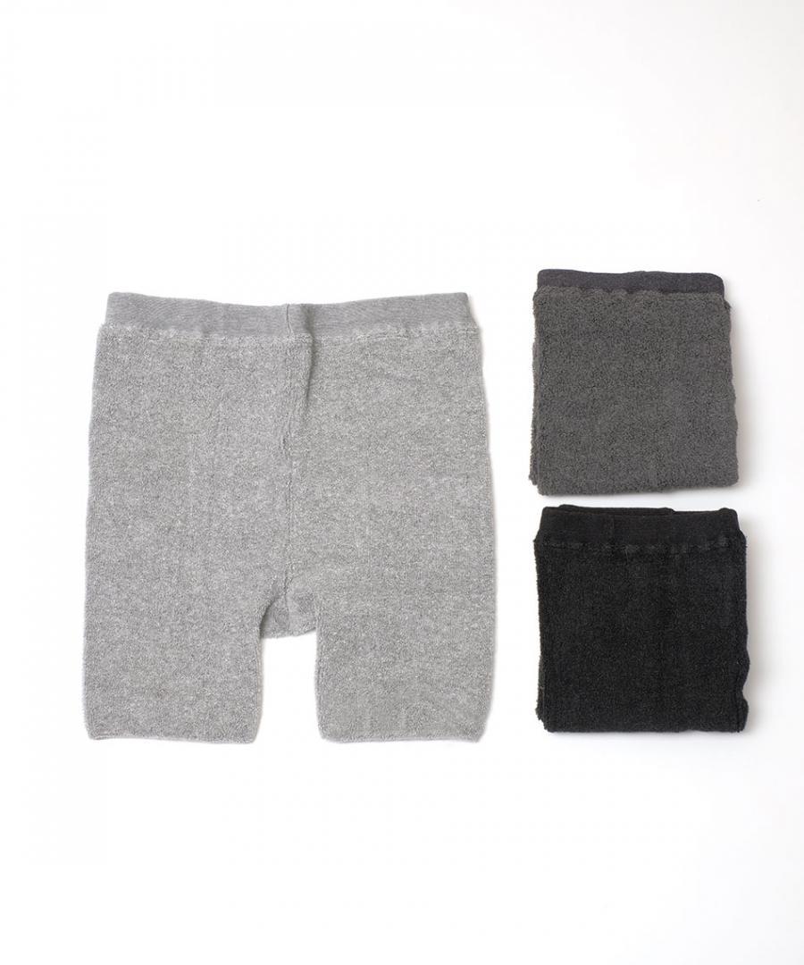 肌に接する部分(内側)はシルクの糸、外側にはコットンの糸を使用した、 パイル地のインナーパンツです。