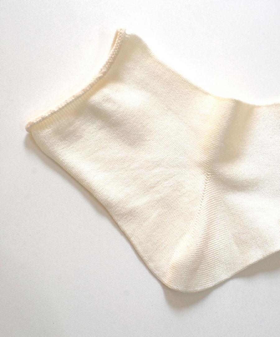 使用した絹紡糸は柔らかな肌触りと光沢があり、吸湿や吸汗性に優れさらりとした履き心地が特徴です。